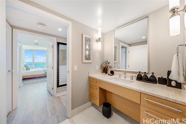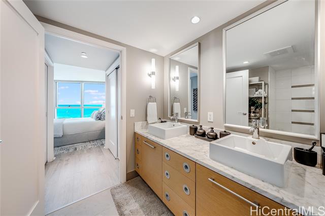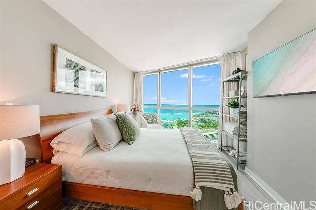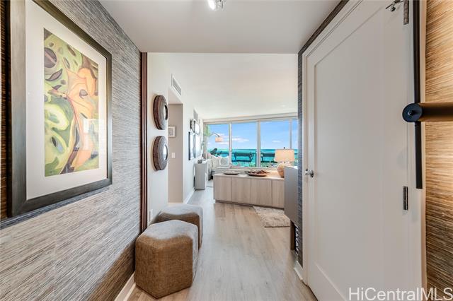 - E Komo Mai to Kakaako’s luxurious Koolani! Your home search ends here! With its grand entry foyer that parallels 5 Star hotels, this executive style, high floor luxury condo is turnkey & move-in ready. Be WOWED by the Million Dollar ocean views immediately upon entry. Dine al fresco on your very own private lanai, enjoying the sweeping ocean views & famous Hawaii sunsets. Tasteful renovations include hardwood flooring, recently painted interior & custom finishes throughout, just too much to list. Floor plan design separates the two large bedroom suites by the living room for added privacy. Chef’s kitchen features high quality Viking appliances, gas cooktop range & large pantry. The current homeowners also love the best location of the two parking stalls. Koolani is known for its friendly & professional staff. All the amenities abound - a large heated swimming pool, hot tub, 2 tennis courts (& pickleball), putting greens, BBQ cabanas, billiards room, movie theater, large party room, business center & more! One block to Ala Moana shopping center, short walk to Ala Moana beach park, Whole Foods & all that Kakaako has to offer. Pet friendly (verify) and furnishings negotiable. Enjoy!