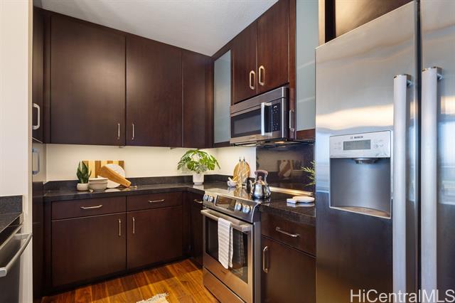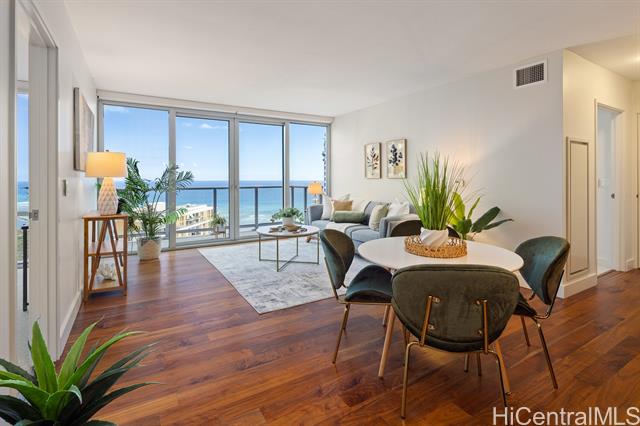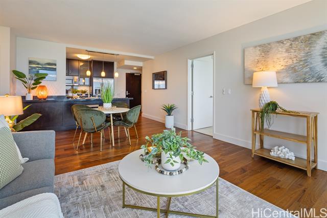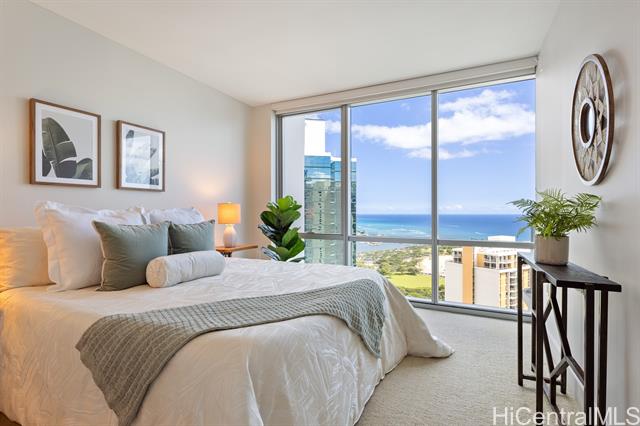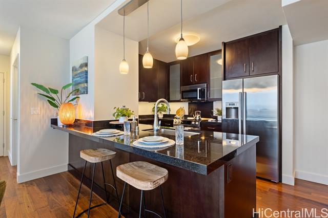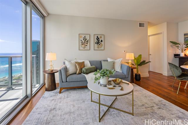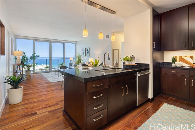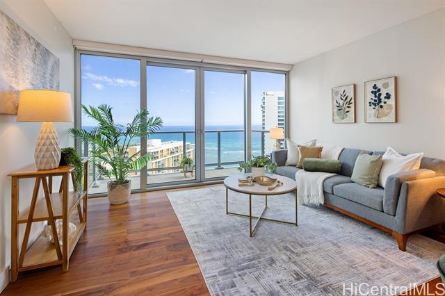 - New amazing price for this Rarely available 2-bedroom, 2-bath residence with a lanai in Waihonua. Spanning over 1,000 sq. ft, this home effortlessly combines modern design, comfort, and style. Step inside to rich hardwood floors, elegant custom cabinetry, floor to ceiling windows, and automatic shades for your convenience. The kitchen features Bosch stainless steel appliances, granite countertops, and sleek porcelain tile. Waihonua residents enjoy an impressive array of resort-style amenities, including an infinity-edge pool with spa cabanas, a fitness center, private theater, and inviting BBQ pavilions. The building also offers a luxurious club room, guest suites for visitors, ample storage, and secure entry for peace of mind. Ideally located in the heart of Honolulu, you are just steps from Ala Moana Shopping Center and Beach Park, with Ward Village, world-class dining, entertainment, and the vibrant beach lifestyle all within easy reach. This exceptional residence offers the perfect blend of convenience, luxury, and island living. Note it is pet friendly too!