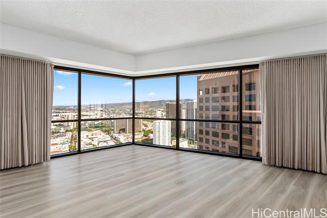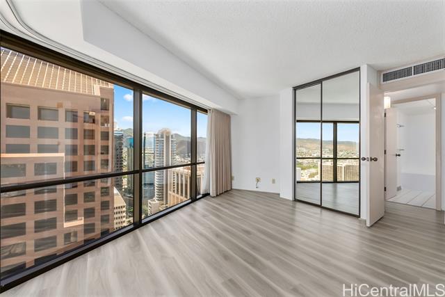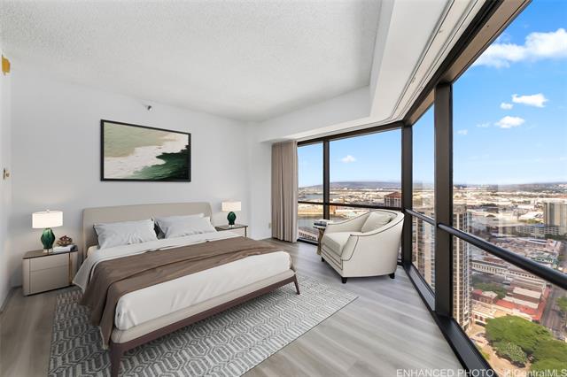 - NEW LISTING!! Experience urban living at its best in this 1-bedroom, 1-bath unit at the Executive Centre in the heart of Downtown Honolulu. This spacious 616 sq. ft. residence features fresh interior paint, stylish vinyl plank flooring, and floor-to-ceiling windows that fill the space with natural light while offering beautiful city and mountain views. Enjoy the comfort of central AC and the convenience of an in-unit washer/dryer. Includes one covered parking stall. Centrally located near restaurants, shops, and entertainment. Don’t miss this fantastic opportunity! 3 Photos have been virtually staged(enhanced).