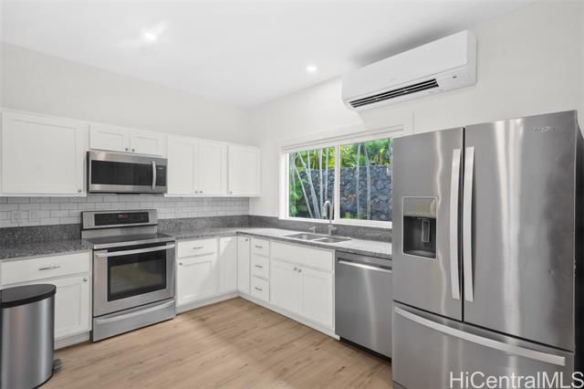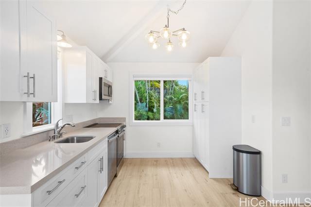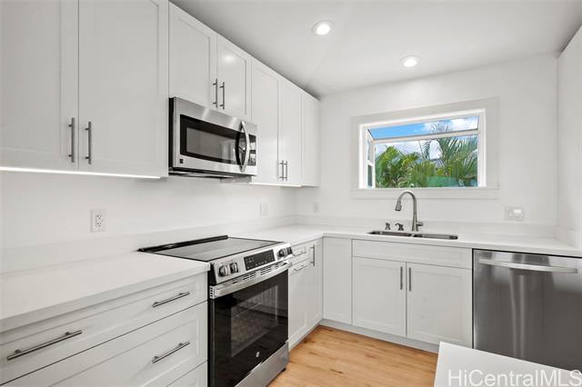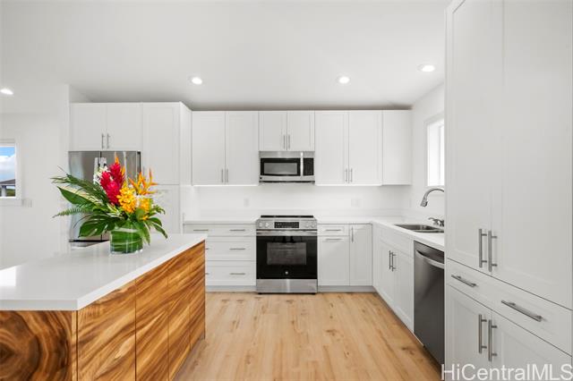 - Renovated beach-style 3 bd, 2 ba home with 2 bd,1 ba permitted ohana. Stroll to one of the finest beaches on Maui from your new home in Kamaole Heights, Kihei. Ocean views from main home with stunning views of West Maui Mountains and Haleakala. Property also includes a 620 square foot studio living space – perfect for artists or musicians. The main home and ohana have new custom kitchens. The ohana has two new split A/C units. A drop-down ceiling was added to the additional living space for extra soundproofing. Upgrades to all 3 units include new Mohawk waterproof luxury vinyl plank flooring.New interior and exterior doors with custom French doors.Exterior upgrades include additional rock wall and planter. New palm landscaping covering perimeter of backyard for added privacy. Backyard concrete was professionally stripped, stained,and sealed.All new paint inside and out.Two car garage with laundry for downstairs living spaces.Large driveway to allow for additional five car parking. Over 10,000 square foot lot.The home includes 54 leased PV panels which keep monthly electric costs below $50 for the entire property!All renovations were completed in 2024 and 2025 at a cost of $500,000