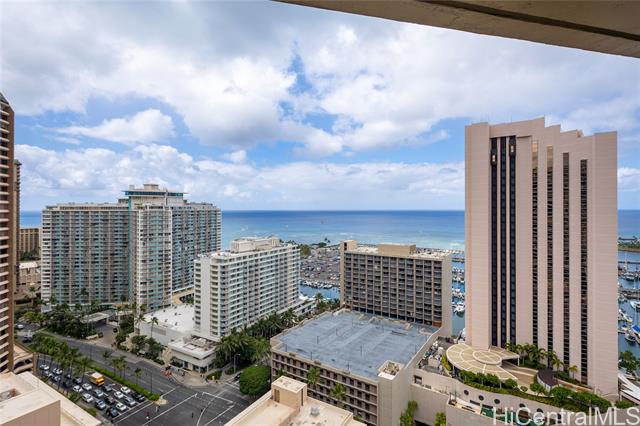 - Completely renovated 31st floor unit at the Waikiki Marina featuring exceptional sweeping ocean and sunset views. Designed with functionality in mind, the residence features thoughtful built-in storage and clean, modern finishes. Enjoy your morning coffee or sunset cocktails while checking the surf right from your living room from this stunning one-bedroom, one-bath condo, which includes covered parking —an exceptional convenience in Waikiki. Ideally located at the entrance to Waikiki, you're within minutes from Ala Moana Center, Ala Moana Beach Park, and world-class dining, shopping, and entertainment—a move-in-ready opportunity with style, storage, views, and Friday night fireworks