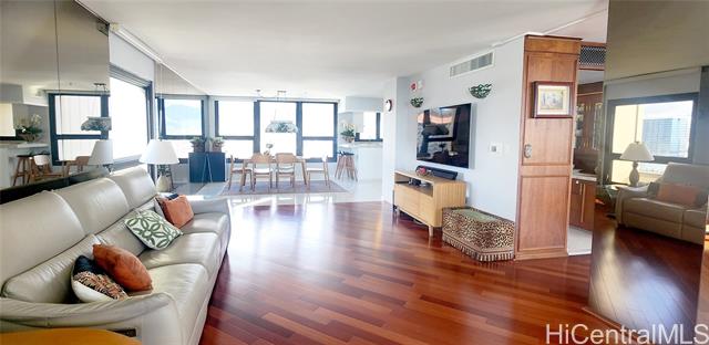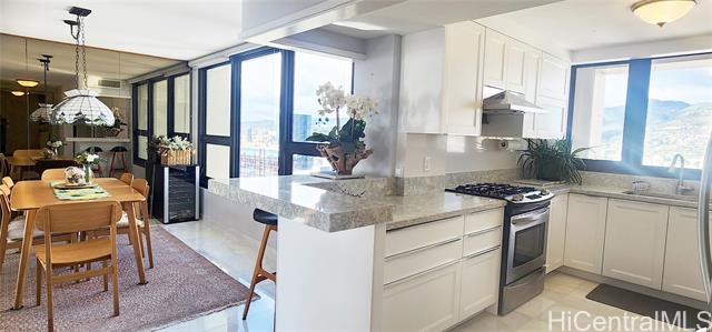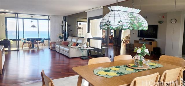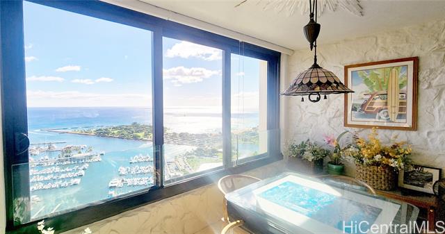 - Rarely available high-floor stack with breathtaking and unobstructed view of the ocean and Magic Island beach park. This unit is the largest "H" floor plan with luxurious upgrades such as two enclosed lanais, spacious bedrooms/living space, a built-in wet bar, custom countertops/cabinetry, and so much more. The building is very secure and comes with lots of well-maintained amenities such as a pool/hot tub, tennis courts, BBQ areas, and lots of guest parking. Located right across from Ala Moana Shopping center, this property is not only steps from many shops/restaurants but also a short walk away from the beach! Maintenance fee includes almost all utilities such as electricity, WIFI, AC, water, sewer, and common expenses. Additional monthly fee is for association reserves.