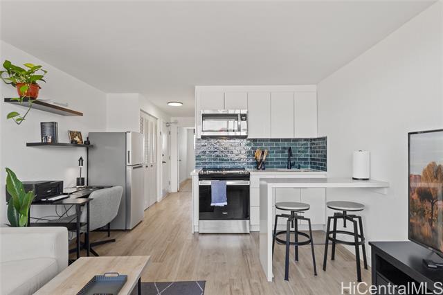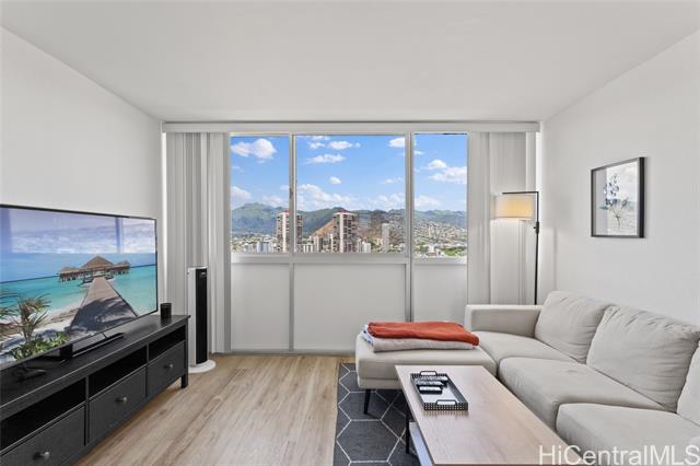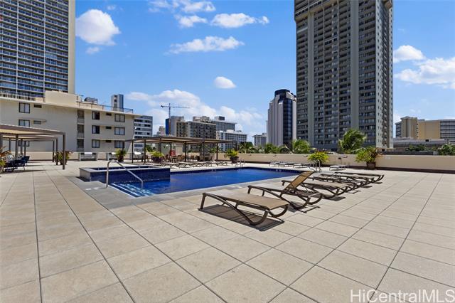 - Discover oasis living in Waikiki at Aloha Lani! This beautifully renovated one-bedroom, one-bathroom residence features luxury vinyl flooring, fresh paint, modern appliances, custom kitchen counters and cabinetry, and an upgraded bathroom. Take in views of the Ala Wai Canal, Koolau mountain range, and Ala Wai Golf Course. Residents enjoy resort-style amenities including 24-hour security, a pool, barbecue area, fitness room, sauna, secured entry, and covered parking — all within walking distance to Waikiki’s beaches, shopping, and dining.