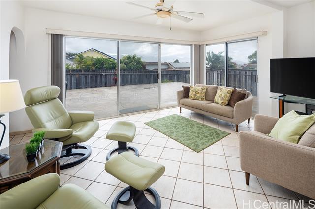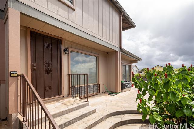 - Move-in ready and in excellent condition, this rarely available 3-bedroom, 1.5-bath townhouse at Liolio in Waipio Gentry stands out with a valuable permitted extension. Originally 1,094 sq. ft., the home now offers approximately 1,334 sq. ft. of living space (to be verified in appraisal), a rare bonus that expands how you can enjoy and use your home. The extension also allows for the washer and dryer to be located inside the house, neatly tucked behind closet doors. Step outside to the upgraded lanai, about 700 sq. ft., with a retractable awning. Once a sloping, unusable area, it has been raised and leveled to create a flat, functional outdoor space where you can relax or entertain while taking in panoramic mountain views. With its elevated position above a peaceful walking/jogging path and no homes directly behind, the setting offers a welcome sense of privacy. Fresh interior paint brightens the home, and parking is convenient with one covered stall and one open stall located nearby. Liolio is a clean, well-kept community close to Costco, Waikele Shopping Center, and freeway access. An outstanding opportunity in a highly desirable neighborhood.