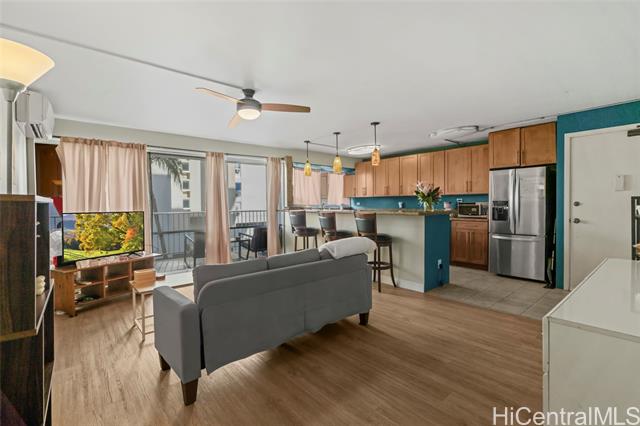 - VA ASSUMABLE RATE at 3.00%! This well-designed 2 bed, 2 bath, 2 parking unit offers a flexible layout with 2 separate entrances. This low rate + the potential for income in a great location combines for a tremendous package deal. Palm trees just outside the balcony welcome you onto a spacious lanai, contributing to extra tropical feel. Residents can relax at the rooftop heated saltwater pool while taking in breathtaking views. Ideally located near Waikiki Beach, world-class shopping, dining, and entertainment, this Waikiki condo offers the best of island living.