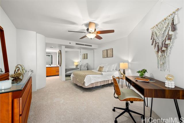 - Waterfront gem in downtown Honolulu’s iconic Harbor Court luxury condo - this high-floor unit offers a spacious open floor plan, floor to ceiling windows, two well-appointed bedrooms each paired with an en suite bathroom, and a generously sized lanai to enjoy stunning south shore Oahu views. Exuding refined living, each residential floor consists of just five units, and the 14th floor rec deck offers resort-style amenities - heated infinity pool, jacuzzi, al fresco bbq areas, conference room, rec space, fitness center, library, and of course an observation tower. Renowned Architect, Norman Lacayo’s influence is seen in Harbor Court’s landmark design elements - a monumental ground floor plaza, elegant fountains, and a tiered exterior form that artfully interacts with light and shadow. Abundant guest parking, an attentive residential manager, and 24-hr security ensure residents and their guests are taken care of. While surrounded by an abundance of downtown dining, shopping, and entertainment, a convenience store and fine dining restaurant, Pai, are also located in the lobby. Convenient, distinguished (and pet-friendly) - make this remarkable residence yours!