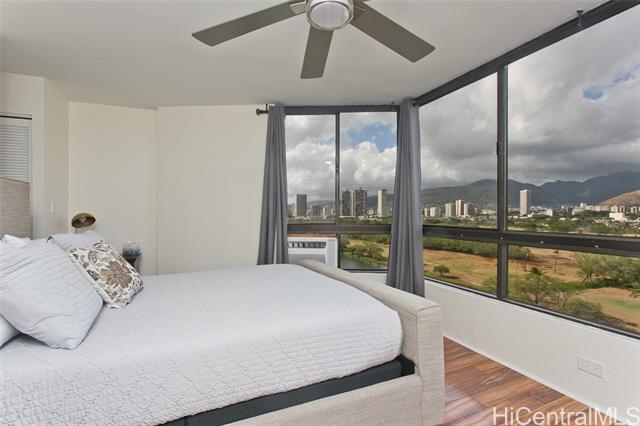 - Large corner unit. Bright, Breezy. Ala Wai Canal, Mountain, Golf Course Views. Freshly painted, Koa laminate floors, Open Kitchen, All NEW Appliances, New Shower, Updated vanities, New electrical panel, New Ceiling fans and light fixtures. No popcorn ceiling. Lateral pipes replaced by prior owner. 3 smart TVs included. VA Approved.