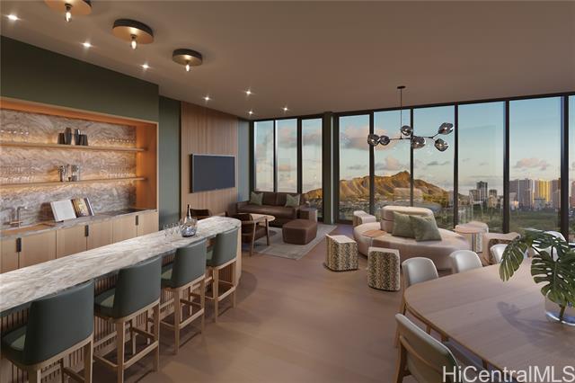 - Welcome to Kuilei Place, a thoughtfully designed 2 bedroom, 1 bath residence located on the convenient third floor with parking on the same level for easy access and commute. This home showcases modern finished throughout, including premium Bosch applicance and elegant Kohler fixtures, blending both style and functionality. Built by the renowned Kobayashi Group, Kuilei Place reflects the developer's reputation for quality craftsmanship and attention to detail. Experience contemporary living in the heart of Honolulu with comfort, convenience and lasting value. Expected to deliver new homes to all residents ending of 2027, Kuilei Place is poised to break the mold of affordability with sustainable features like greywater treatment and centralized solar hot water systems. With the interior designed by award winning Philpotts Interior and local architecture by Design Partners Incorporated. The range of amenities rivals the very best developments with swimming pools, bbq cabanas, two dog parks, children playgrounds, walking path, two fitness centers, and seven club rooms which are the show pieces of the amenities. Reaching heights of 43 stories, the in-house karaoke lounge is impressive.