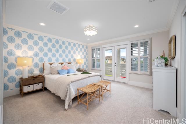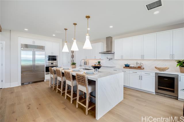 - Step into refined coastal luxury with this expansive new construction residence, offering over 4,000 square feet of beautifully designed living space. With five bedrooms, four-and-a-half baths, a dedicated study, a covered lanai, and a private courtyard, this home seamlessly blends functionality with sophistication—perfect for both peaceful retreat and vibrant entertaining. Enjoy sweeping ocean views and a full suite of elevated features, including central air conditioning, a 120-gallon solar water heater, EV charger readiness, and accommodations for a photovoltaic solar electric system. The gourmet kitchen is thoughtfully appointed with top-tier appliances: a 42” built-in Sub-Zero refrigerator, Wolf induction cooktop, convection oven, microwave with drop-down door, and an Energy Star-certified Bosch dishwasher—all designed for culinary excellence. Outdoors, professionally landscaped front and rear yards with automatic irrigation offer a lush, low-maintenance setting for gathering, relaxing, or simply enjoying the breeze. Pohinahina 75.20 A floorplan Kekainani at Hoakalei | One of the final 32 luxury residences in the prestigious Kuapapa neighborhood