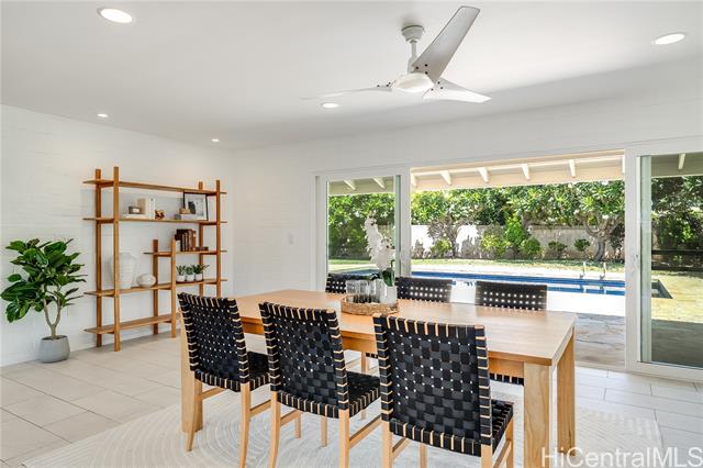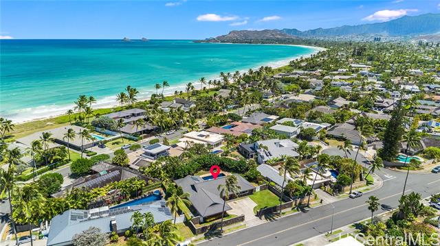 - Kailua Beachside Living at 101 Kailuana unlocks the Lifestyle you’ve been dreaming of! Rare Large Lot with Pristine Pool. Enjoy Beach Access by Fob to Surf & Stroll the White Sands of Kailua Beach! Spacious 4 Bedroom 3 bathroom home is a Mid Century Design with Massive Yard Spaces! Tiled Pool is surrounded by Lush TropicallyLandscaped Back Yard Oasis! Entertainment Lanai is covered and provides room to Dine & Host Parties with an Open Concept flow into the Kitchen & Living Room! Inside, enjoy Central & Split A/C, tile flooring & a Luxurious Custom Kitchen with granite countertops & stainless steel appliances. Primary Bedroom has large sliding door to the pool & a Spa-like En-Suite. You'll appreciate the 3 other Bedrooms are positioned near the 2 other Bathrooms. The Kailuana Community is highly desirable for its proximity to the Beach & just minutes from Aikahi Shopping Center & Kailua Town’s boutiques, dining, & outdoor adventures. Nearby are world-class beaches, Kaneohe Marine Corps Base, hiking trails, and easy access to Honolulu International Airport. Come Live, Work and Play in Kailua in this iconic community today!