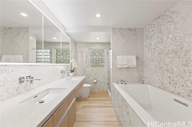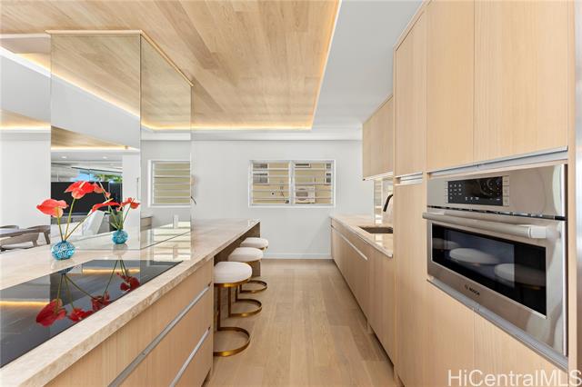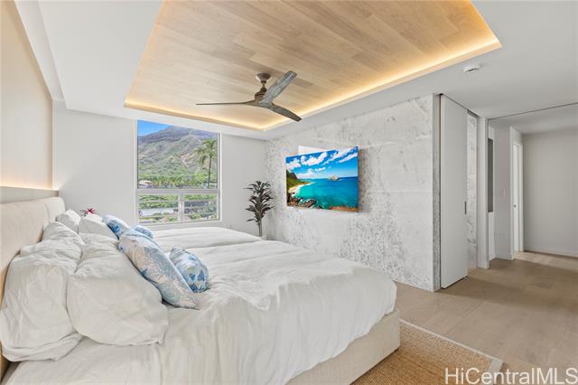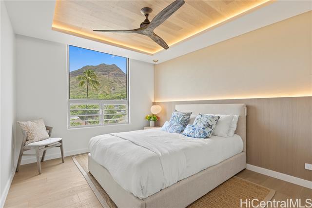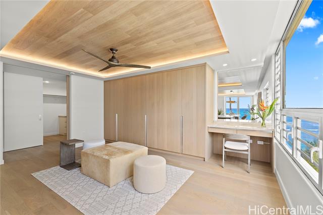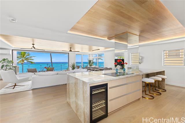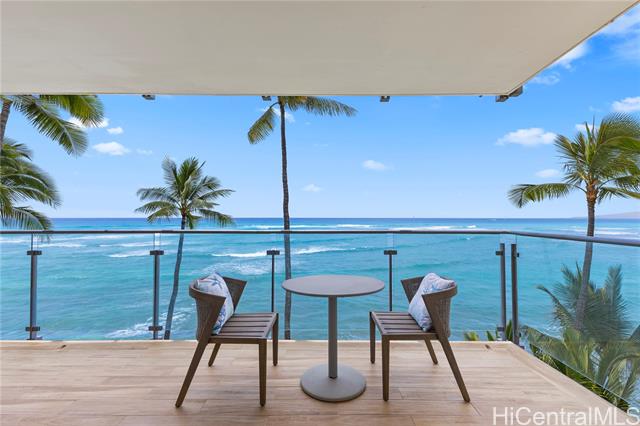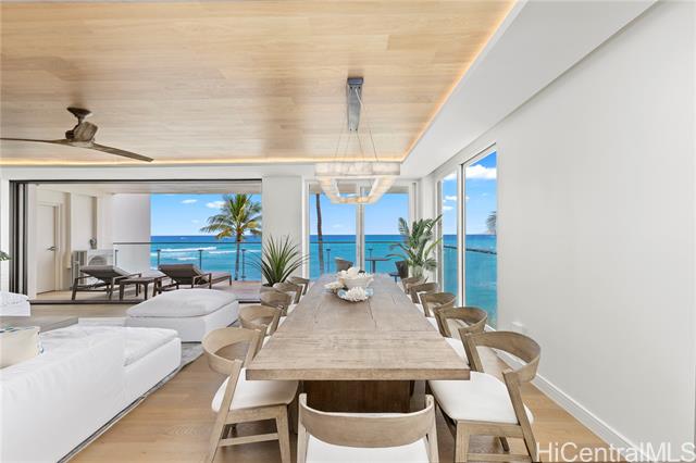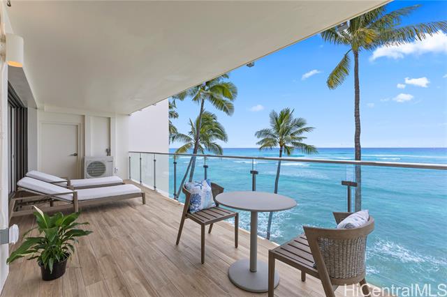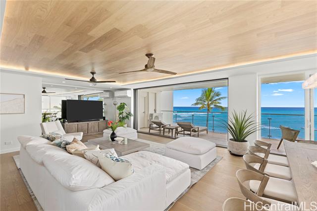 - Experience luxurious coastal living in this beautifully renovated oceanfront unit with breathtaking ocean views and the soothing sound of waves. Enjoy sunsets each evening and Honolulu’s city lights by night—all from home. The open layout enhances airflow, bringing the ocean breeze into every room. Each space offers an ocean or Diamond Head view. Two mountain-facing bedrooms provide peaceful Diamond Head vistas. A spacious middle den has a closet, adding flexibility. Newly installed sliding glass doors offer seamless indoor-outdoor living and quiet when closed. The kitchen features a pantry and ample storage. The spa-style bath includes a deep soaking tub with an ocean view and a separate shower. This elegant home blends comfort, thoughtful design, and a prime oceanfront location for exceptional island living.