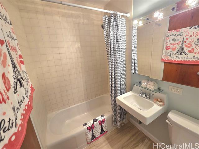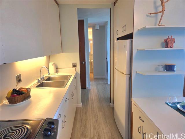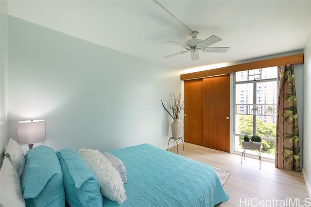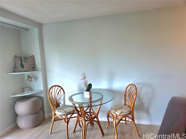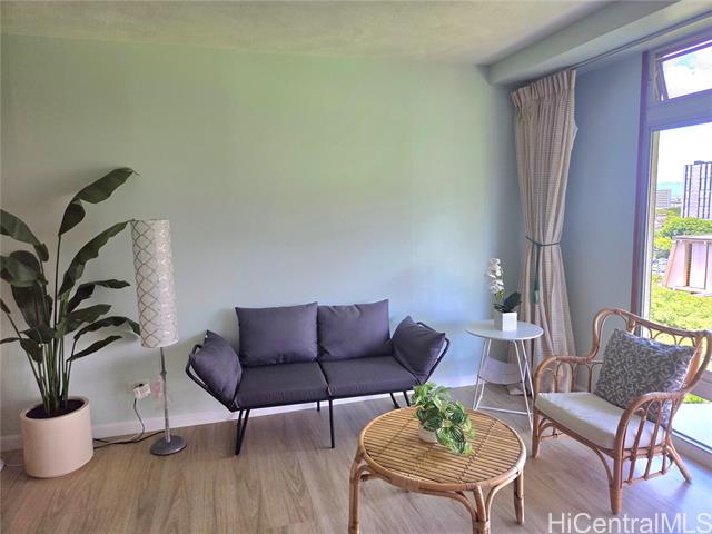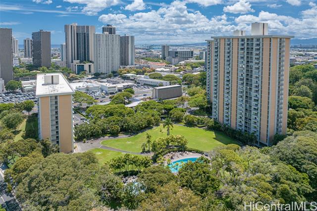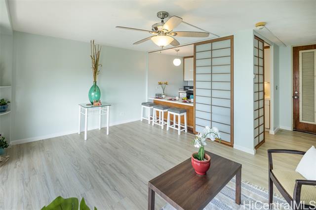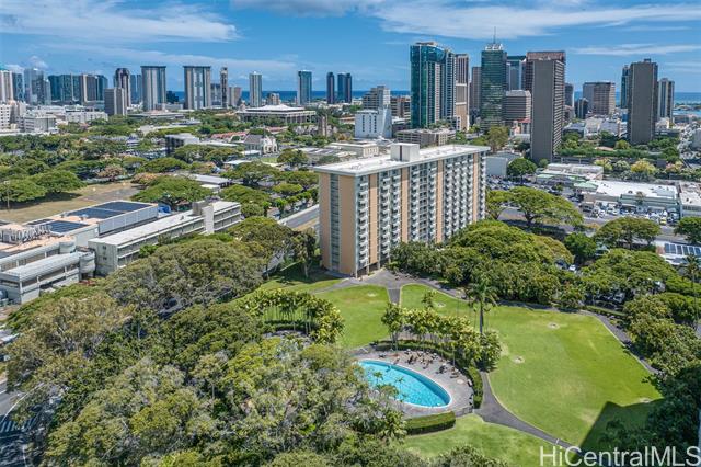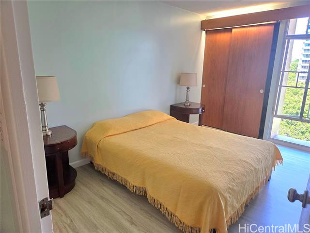 - Discover the charm and convenience of city living in your 1 bedroom/1 bath unit in the QUIET part of Queen Emma Gardens – Prince Tower in the heart of Downtown Honolulu. This unit overlooks the beautifully landscaped gardens, koi ponds, and walking paths, offering a peaceful view and retreat right in the middle of the city. The interior is tastefully done with vinyl plank flooring and large picture windows to enjoy your garden view. The kitchen can be enclosed with the shoji doors, or left open for a natural flow. 1 assigned and covered parking stall not too far from the building with plenty of guest parking. Residents enjoy resort-like amenities including a swimming pool and kiddie pool, BBQ areas, tea houses for private gatherings, a children’s playground, and 24-hour security for added peace of mind. Its central location provides quick access to Downtown, restaurants, shopping, medical centers, and major bus lines, making it an ideal home for those seeking both comfort and convenience. Whether you’re a first-time buyer, investor, or looking for a vibrant urban lifestyle, Queen Emma Gardens offers the perfect balance of nature, culture, and modern living in Honolulu.