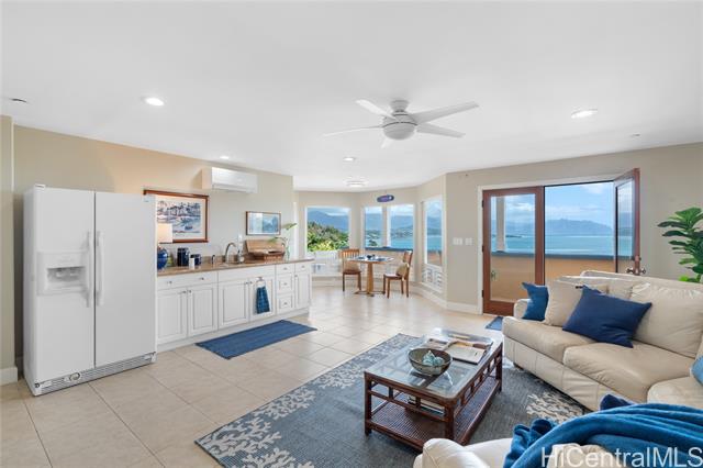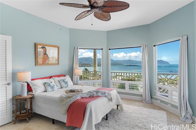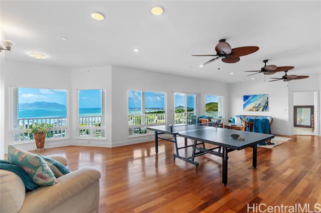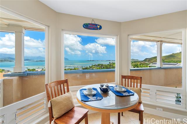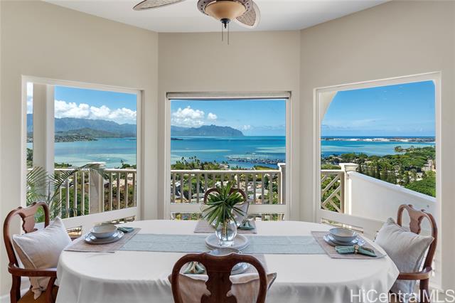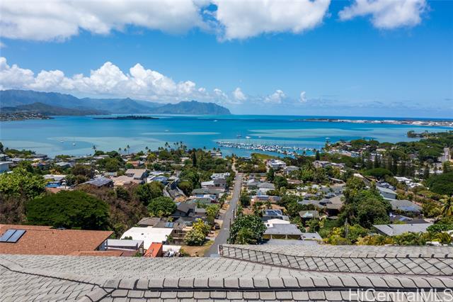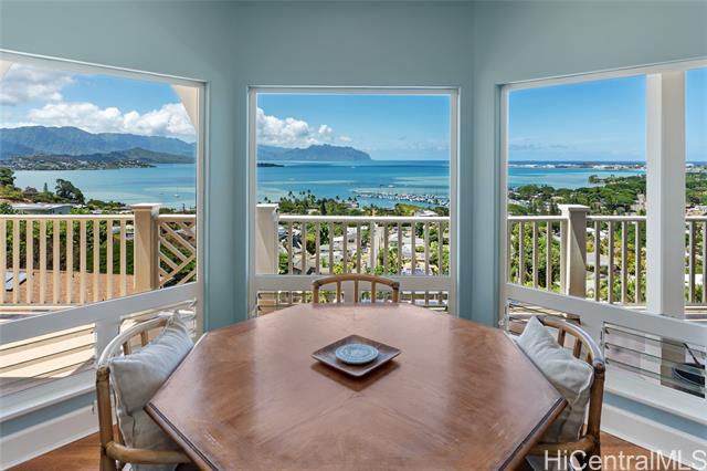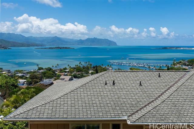 - Experience unparalleled stunning views of Kaneohe Bay & the Ko’olau mountains as you enter into this gated Hilltop Sanctuary! 2 CPR units encompass this 5 bedroom, 5/2 bathroom custom home sits atop the unique Windward neighborhood of Mahinui on Oahu— a hidden gem low-traffic area, just minutes from Kailua town & its beaches — boasting dynamic panoramic views of vibrant Kaneohe Bay, Kaneohe Yacht Club, Chinaman’s Hat, and iconic Coconut Island. Savor the ambience created by high ceilings, expansive rooms with large view windows, & an abundance of natural light. Solidly built with all steel beam construction, hardwood flooring, travertine, imperial plaster walls, split AC; designed for everyday living and entertaining with two primary suites, large game room and bonus room, 3 entrances & separate living areas for extended family, friends or rental. Outdoor lounge and sundeck plus private back yard beckon you to relax or unwind & savor the fresh air of hilltop ocean breezes. Proximity to H-3 on ramps allows you to live on the desirable lush Windward side, while still providing easy access to Honolulu and the airport.