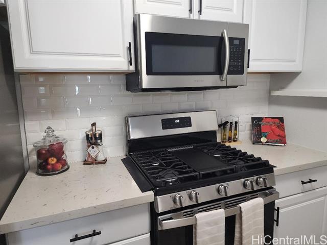 - Wow! This beautifully renovated split-level townhome is a true standout in West Loch Fairways. Featuring 2 spacious bedrooms and 2 dedicated parking stalls. Step inside to upgraded wood laminate flooring that flows throughout the home, creating a warm and modern feel. The bathroom has been transformed with a sleek walk-in shower and stunning tile surrounds — a spa-like retreat right at home. In the living room, a custom soffit with recessed lighting adds a touch of elegance, while ceiling fans in every room keep the island breeze circulating. Enjoy the ease of brand-new appliances, including a washer, dryer, and refrigerator, plus a gas range for those who love to cook. The private courtyard is perfect for entertaining, relaxing, or hosting weekend gatherings. This move-in-ready gem is waiting for you. Maintenance fees of $604 includes water/sewer, common area, and cable. Schedule your showing today!