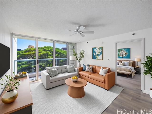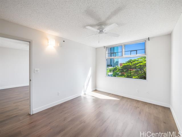 - Welcome to 1133 Waimanu #508, a move-in ready 1-bedroom, 1-bath condo in the heart of Kakaako. This bright residence features an open layout with fresh flooring, white cabinetry, a breakfast bar, and floor-to-ceiling windows that bring in natural light and treetop views. Enjoy a covered lanai, mirrored closet, ceiling fans, and in-unit washer/dryer. The well-managed building offers secured entry, 24-hour security, BBQ areas, recreation room, and landscaped green space. One secured parking stall included, plus 14 guest parking spaces. Steps from Ward Village, Whole Foods, Ala Moana Center, and Ala Moana Beach Park, this home offers the perfect mix of comfort, value, and convenience.