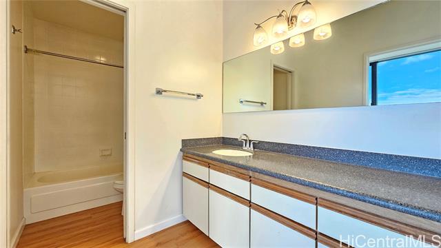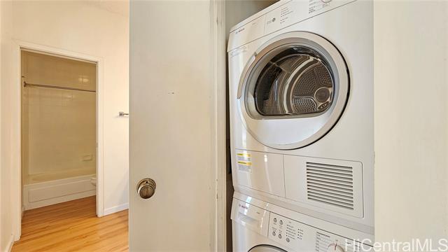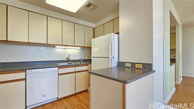 - Penthouse unit on the top floor featuring stunning ocean, city, and mountain views. This spacious 1-bedroom, 1-bath residence offers high ceilings and tasteful upgrades, including Paradigm Sandalwood luxury vinyl plank flooring (2021) and new soft vinyl vertical blinds with aluminum tracking (2025). Living room includes mirrored accents to enhance natural light. Kitchen and bathroom features solid surface countertops. Appliances include refrigerator, range/oven, built-in microwave, dishwasher, and Bosch washer/dryer. Unit offers central A/C, entryway broom closet, and covered end stall parking space. Living Area: 622 sq. ft. | Year Built: 1987. Building Amenities: Swimming pool, jacuzzi, BBQ/recreation area, fitness center, resident manager, and 24-hour security. Maintenance Fee Includes: hot water, water, sewer, and cable TV. Seller may choose to perform a 1031 exchange. Sale not subject to finding a replacement property.