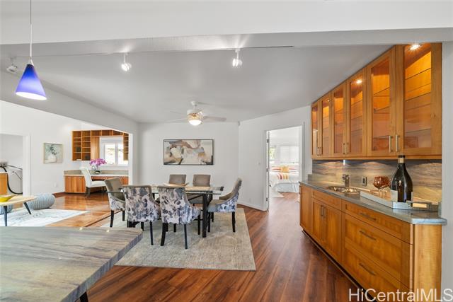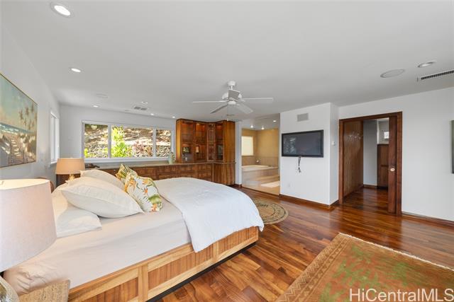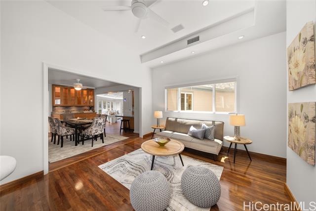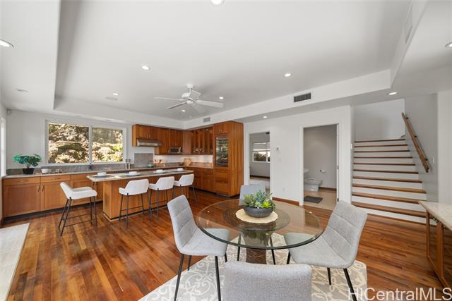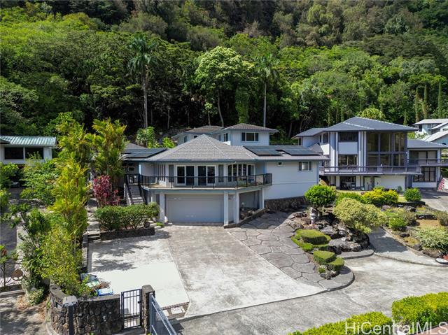 - Nestled within the private, gated Waokanaka Estates, this beautifully updated residence blends timeless Hawaiian craftsmanship with modern comfort. Featuring rare curly koa and ohia wood accents, fresh luxury vinyl plank flooring, and new interior and exterior paint, the home feels both warm and refined. Designed with flexibility in mind, it offers two spacious primary suites, ideal for multi-generational living or hosting guests. The large, landscaped lot provides a lush tropical retreat with ample space for entertaining or quiet relaxation, while covered lanais invite seamless indoor-outdoor living. Property includes 34 OWNED PV Panels! Set just minutes from downtown Honolulu yet tucked away in a serene, private enclave, this property combines privacy, elegance, and convenience. An exceptional opportunity to own a custom-crafted home in one of Nuuanu’s most coveted communities!