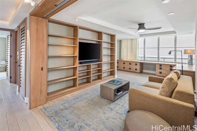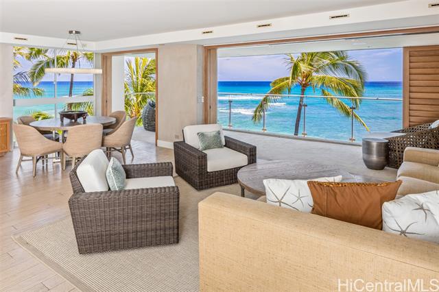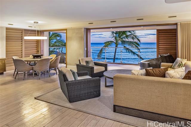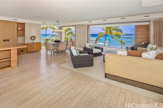 - Direct oceanfront! Luxuriously upgraded corner apt., with 2 bedms, walk in closet, 2 baths, large media room plus a spacious home office. There are just 2 apts per floor in this highly sought-after boutique building on Honolulu’s Gold Coast. Interior design and renovation by Philpotts Interiors. Custom built-ins and quality finishes throughout. Ocean and sunset views from large lanai & living areas. Diamond Head views from bedrooms. Each apt. has its own semi-private elevator foyer. Two assigned covered parking in gated garage, and 14 guest parking spaces. Pet friendly building. Onsite Resident Manager. Secured Entrance with video call up. Beautifully appointed lobby area. Spacious and turnkey for the most discriminating buyers!