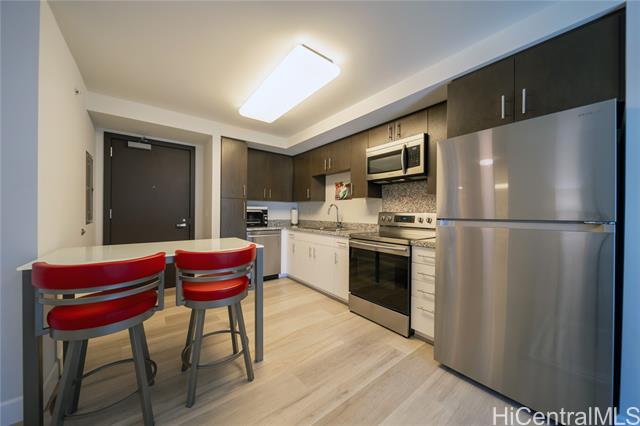 - Beautifully updated, pet friendly, stylish condominium located in the heart of Ward Village, Kaka‘ako. Carefully curated furnishings adorn the luxury vinyl plank flooring in the living spaces AND are fully negotiable along with the sale! Explore the Kaka‘ako lifestyle with in-building storage for bicycles, surfboards, and a 7th floor pet walk. Ample entertainment opportunities both indoors and outdoors, explore the 8th floor amenity deck, including BBQ, Indoor Fitness Center, Yoga Room, Karaoke Room, Movie Theater, Children's Playground, Children's Play Room, Co-work Space, Recreation Rooms, and more! Schedule a showing or view our virtual tour link today.