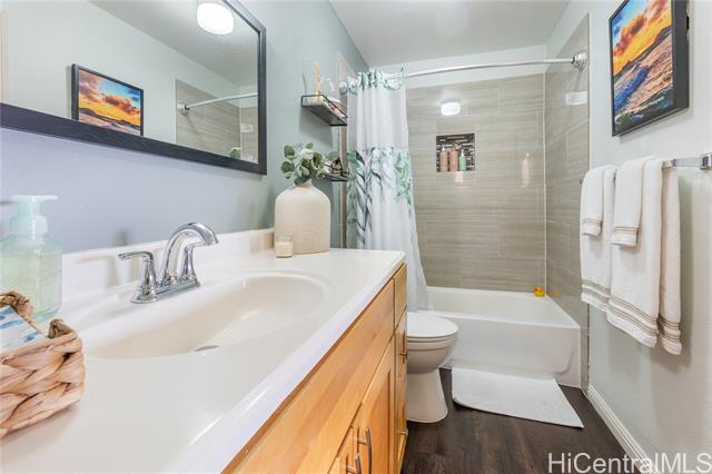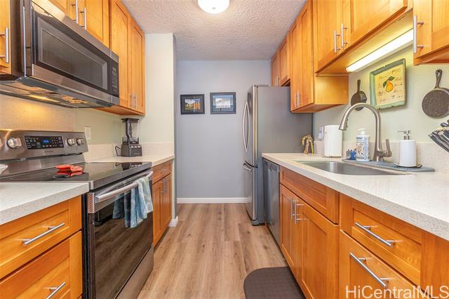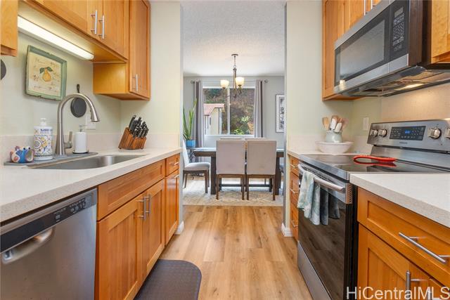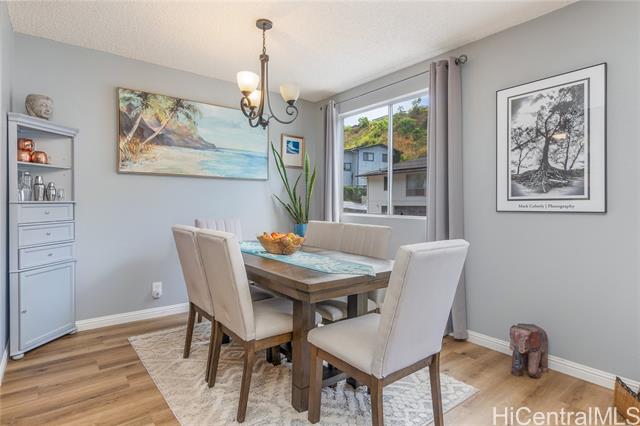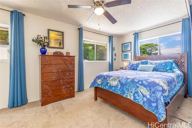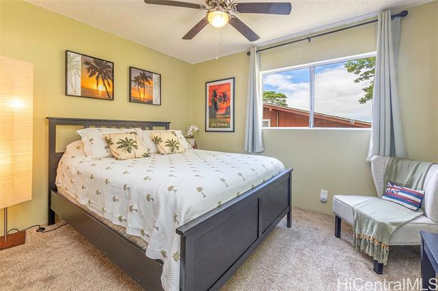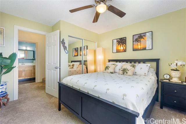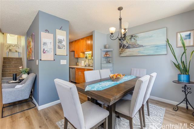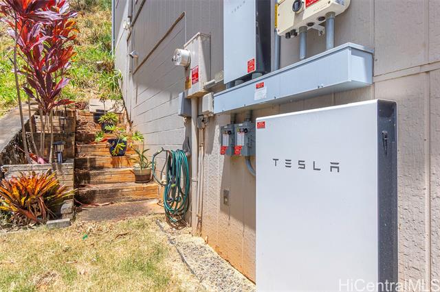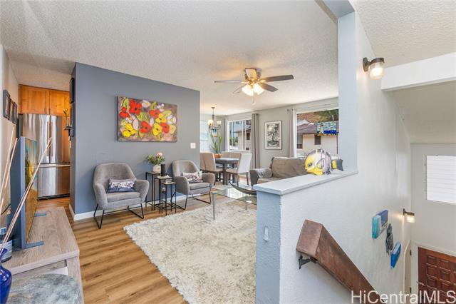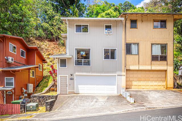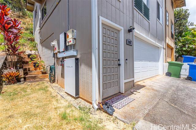 - Excellent value at this price point! Move-in ready and highly upgraded 3-bedroom, 2-bath attached single-family home with a 2-car enclosed garage. Features include an 11-panel leased PV system with backup battery, plus a solar water heater to help minimize electric costs. Optional Pacific Palisades Community Association membership ($6/month) includes use of the community pool. The kitchen has been updated with quartz countertops and stainless steel appliances, while luxury vinyl flooring flows through the living areas, complemented by carpeted bedrooms for added comfort and noise reduction. Each bedroom is equipped with a window A/C unit, and both bathrooms have been fully renovated with new showers, toilets, vanities, and more. Located in Pacific Palisades next to the elementary school, parks, and neighborhood conveniences with just a short drive to shopping and dining in Pearl City. A must-see! One or more photos have been enhanced.