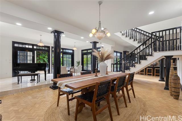 - First Open House 11/9 /2025. 2:00 pm — 5:00 pm. 11/12 10:00 am -12:00 pm BROKER OPEN, 11/16/25 2nd OPEN HOUSE 2:00 pm-5:00 pm First Time On the Market !!! Conveniently located near Kahala Mall, this beautiful property sits on a 12,117 approx sqft lot with a spacious 3,860 approx sqft interior. On the market for the very first time, the home showcases high ceilings, open living spaces, and a refined design throughout. The first floor offers a guest suite, bonus room, and an oversized laundry room. A dramatic staircase connects the first and second floors with an elegant open-to-above design, enhancing the sense of space while inviting an abundance of natural light in the home. The upstairs primary suite features high ceilings and a luxurious layout, while the additional bedrooms are designed with a peaceful ambiance, offering comfort and privacy. Surrounded by mature trees and lush tropical landscaping, this residence enjoys a rare sense of an exclusive setting while still being on a main street. A truly unique opportunity in the highly desirable Kahala neighborhood.