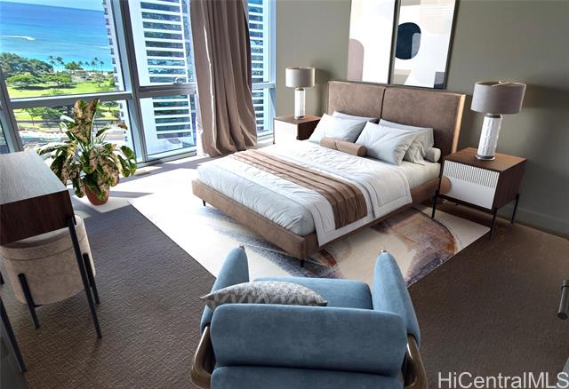 - OCEAN VIEW, High 20th floor, Living room and all bedrooms facing breathtaking ocean. Luxury executive style two bedrooms, two bathrooms, two reserved parking and 2 lockers condo at Waihonua, located in Kakaako, across from Ala Moana Shopping center, Ala Moana Beach park and Magic Island. The condo features Bosch appliances, a sleek quartz kitchen, entry countertop, an Italian porcelain title backsplash and pendant lighting. The living room, entryway and kitchen showcase natural laminate walnut flooring and bedrooms with carpet. Residents can enjoy resort-style amenities, including 24 hour security, an infinity-edge heated salt water pool, Jacuzzi, pavilions with BBQ, well-equipped fitness center, yoga room, movie theater, party room, guest lodge, bicycle storage, surfboard lockers and two guest suites for visiting family. Vacant, Easy to Show.