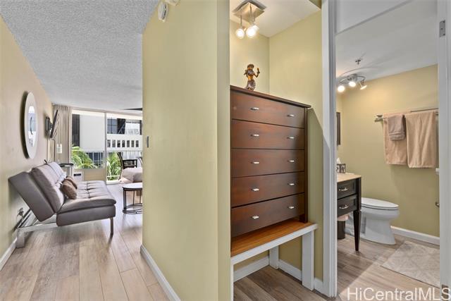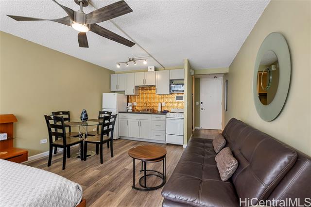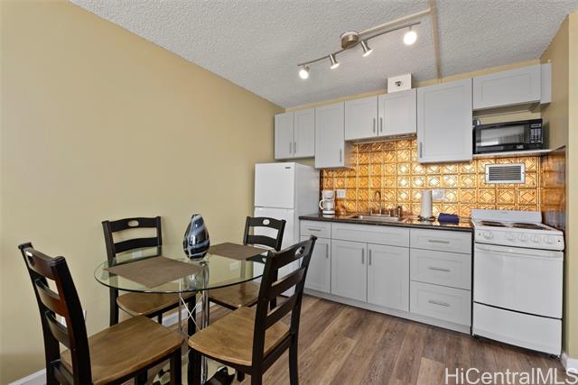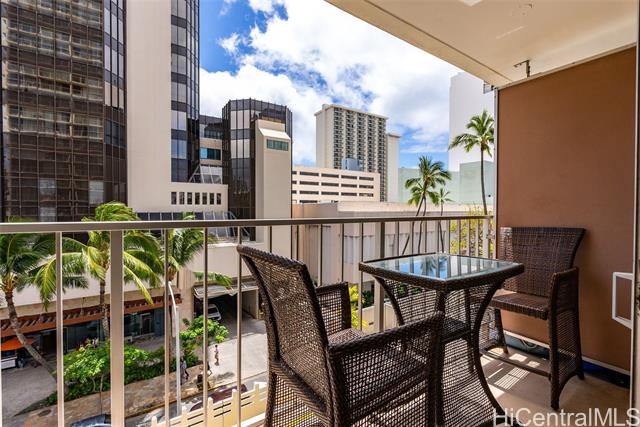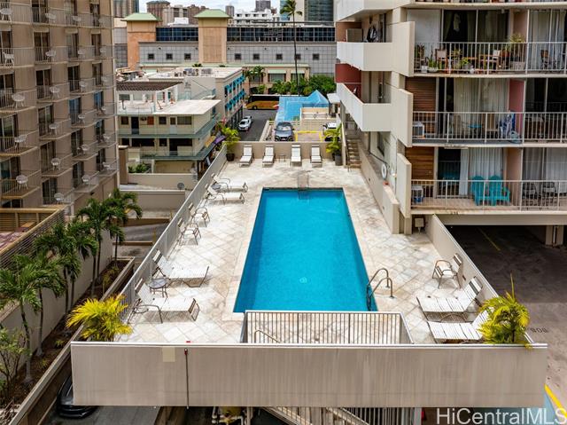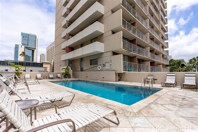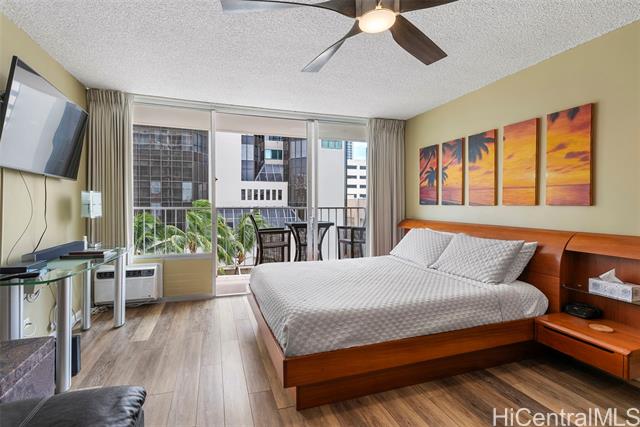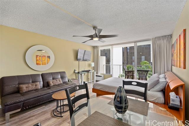 - Amazing price for this legal short-term rental. A turn-key opportunity, ideally located right in the heart of Waikiki. This property is a gem for those looking to soak in the ambiance of a vacation stay at a world-class location, with renowned Waikiki Beach, diverse shopping experiences, and an array of amenities all within easy reach. This upgraded sleek and modern studio unit has both a cozy and versatile layout. The kitchen is a standout with its recent enhancements, featuring new cabinets and countertops along with the kitchen’s gold-patterned backsplash that injects a dose of elegance. Relax and take in the sights around you on the comfortably sized lanai. The unit comes with a secured, assigned parking stall, community laundry on each floor, and a building pool.