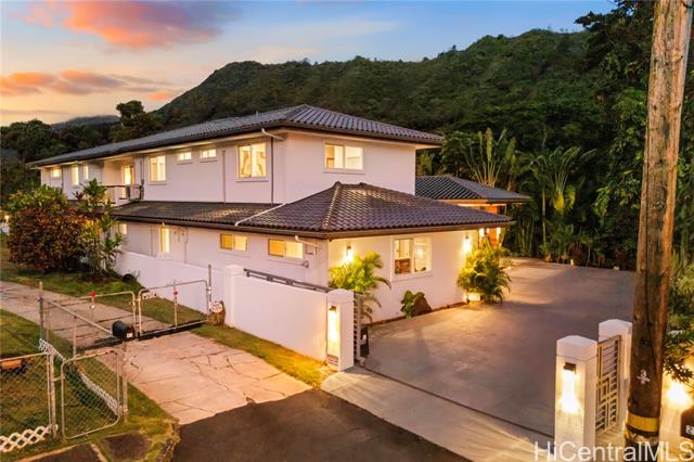 - Classic island elegance harmonizes with contemporary luxury at this distinguished Nu'uanu estate. Thoughtfully designed, this residence offers four bedrooms (including 2 expansive primary suites & 2 private guest suites), along with 4.5 bathrooms & a spacious three-car garage, providing generous accommodations for both family & visitors. A custom architectural layout effortlessly blends indoor & outdoor living, creating seamless spaces for everyday comfort & stylish entertaining amidst lush natural surroundings. The gourmet kitchen is appointed with a striking curved Labradorite granite bar, professional-grade appliances & refined cabinetry, making it both beautiful & functional for culinary endeavors. Meticulously landscaped grounds foster a serene ambiance, anchored by an inviting pool & jacuzzi complemented by a custom-built gazebo for leisure & privacy. A newly constructed meditation deck overlooks Niniko Stream & its tranquil waterfall, adding to the home's sense of retreat. Upon arrival, guests are greeted by a resort-style porte-cochère & leading to a private sanctuary in the heart of Nu'uanu Valley. A TRULY UNIQUE ESTATE THAT MUST BE EXPERIENCED TO BE FULLY APPRECIATED!