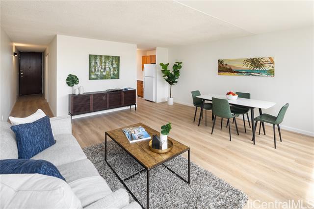 - NEW LISTING – Welcome to La Casa in Waikiki – a pet-friendly 1-bedroom, 1-bathroom unit featuring brand new luxury vinyl flooring and fresh paint throughout. With the enclosed lanai, the interior space increased to approximately 663 square feet, creating a bright, open, and flexible living space with room for dining, relaxing, and entertaining. This home also includes one assigned, secure garage parking stall along with the convenience of an in-unit washer and dryer. Building amenities include secure guest parking, an on-site resident manager, trash chute, car wash area, loading zone, and a large rooftop deck with stunning sunset and ocean views. La Casa is pet-friendly, VA-approved, and located directly across from the Ritz-Carlton Residences — just minutes from Luxury Row, world-class restaurants, Waikiki shops, Fort DeRussy Beach Park, Hilton Lagoon, and the famous Friday night fireworks. This is your chance to own a beautifully updated Waikiki home in a prime location! * Vacant and easy to show to pre-approved buyers. First Public Open House this Sunday, September 21, from 2:00 PM to 5:00 PM.