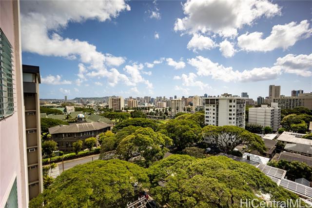 - Beautiful 2 bedroom/1 bath corner unit at the "Punahou Manor" with spectacular city, mountain, Manoa Valley, ocean views and recently redone! Located in Makiki-Punahou neighborhood - close to two major hospitals, art museums, downtown Honolulu, freeway onramps, supermarket, Punahou School and Maryknoll School. Beautiful lanai with sunset views with washer and dryer in unit. 1 covered parking stall. Includes refrigerator, washer and dryer, drapes, range/oven.