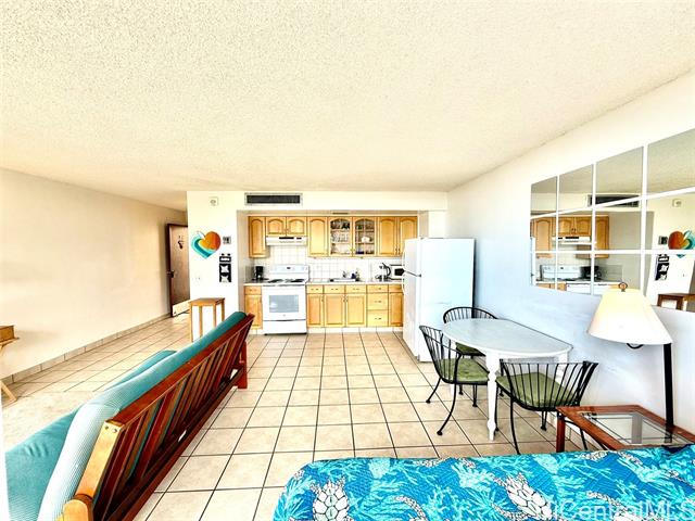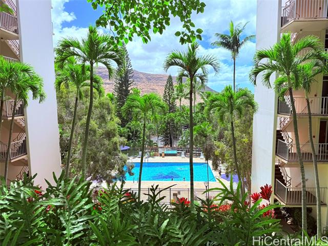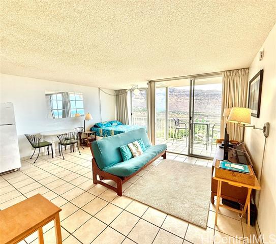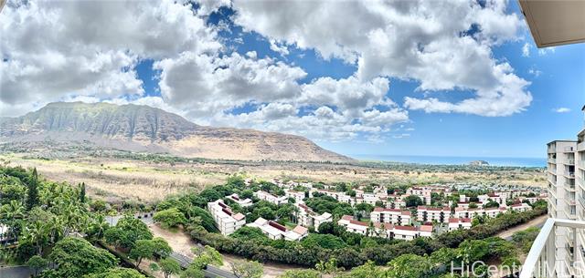 - Absolutely Stunning ocean and mountain views from a rare 16th floor corner studio! Breezy and bright high floor studio located in beautiful Makaha Valley features largest studio floor plan -- 515 sqft of living space and a large Lanai. This turnkey unit has been frequently visited by its owners over the years and very well cared for and is fully furnished for rental or residence. Cozy unit is move-in ready with a great open layout and tile floors throughout for easy maintenance. Central A/C is included in your maintenance fee and multiple large sliding glass doors provide excellent airflow and views. Close proximity to Makaha Beach Park and golf/country club. Makaha Valley Towers is a well kept property with 24-hr security, gated entry, heated pool, resident work space, BBQ areas and is beautiful! 1 unassigned open parking is included with numerous guest parking. Do not miss this studio before it goes!