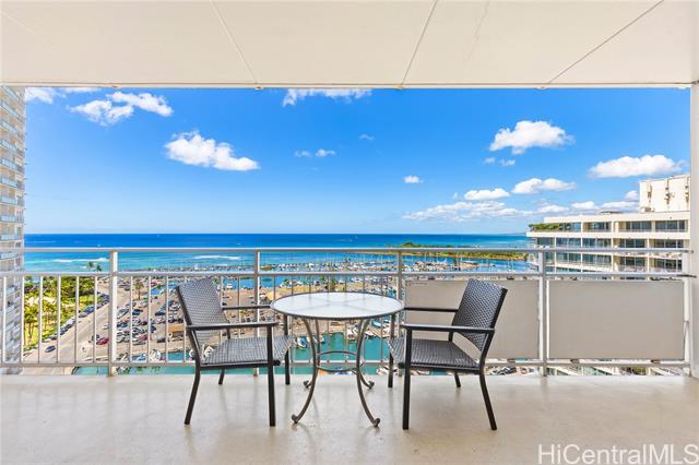 - 16th floor 1 bedroom, with ocean and yacht harbor views. On-site Security with resident manager's office on site, amenities include pool and community laundry area, along with shops and restaurants on property. Walking distance to Waikiki Beach and Ala Moana.
