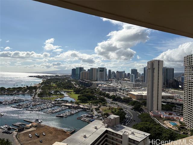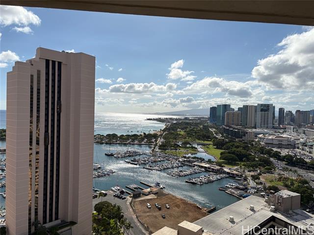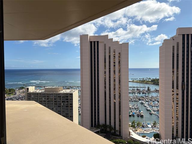 - The key focal points of this beautifully renovated studio are the sweeping ocean views spanning from the Ala Wai Marina, Ala Moana Beach Park, Kaka'ako, to the Waianae Mountain range from the expansive picture windows. The kitchenette includes everything needed for comfortable studio living, including new full size refrigerator, new two-burner cooktop, over the counter microwave, full size sink, and new granite counters. Beautifully built-in cabinetry under the windows provide ample storage and simplicity. Condo amenities include a pool, whirlpool, outdoor dining area with BBQ, and tennis court. Units 3201 and 3202 are side-by-side with a foyer door that can be closed for privacy (excellent benefit if purchasing both units!). Minimum 30-day rental period. Each unit has one covered parking stall included which is a plus for Waikiki! The Waikiki Marina Condo is conveniently located near world famous Ala Moana Shopping Center, featuring hundreds of shops and restaurants to choose from. You do not want to miss seeing this wonderful opportunity for Waikiki living!