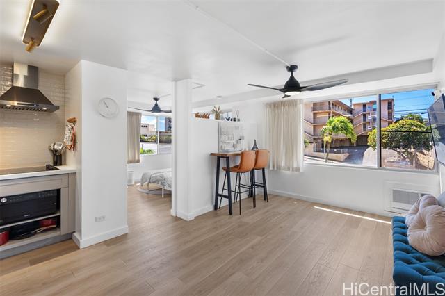 - Modern and renovated corner unit in Salt Lake. This stylishly chic and move-in ready updated and fully furnished 1-bed/1-bath leasehold condo at Five Regents offers bright, open living with tasteful modern touches. Features include vinyl plank flooring, a space-saving Murphy bed, quartz kitchen counters with open shelving, and a sleek bathroom with a rain shower, wood-look tile, and stone pebble flooring. Large corner windows provide great natural light. With 24-hour security, this unit is conveniently located near shopping, dining, and freeway access. A perfect urban retreat in central Honolulu!