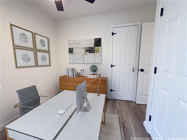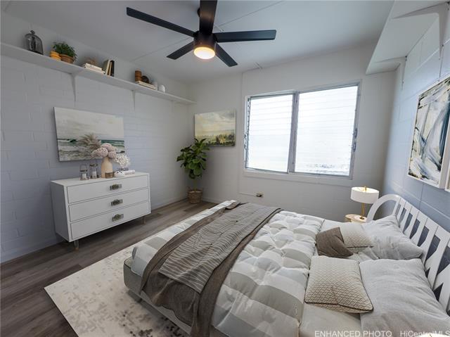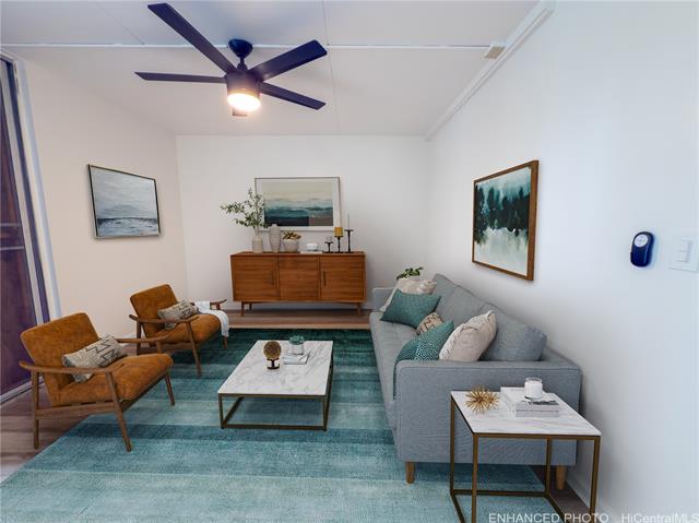 - Tucked into the lush Windward side of O‘ahu, this remodeled 2nd-floor residence at 45-535 Luluku Rd, Unit K4 offers a blend of privacy, comfort, and modern style — all within the sought-after Na Pali Gardens community. This private end unit features luxury vinyl plank flooring, fresh interior paint, and new lighting throughout. The modern kitchen boasts striking black quartz countertops and a contemporary backsplash, making it perfect for cooking and entertaining. Located in a quiet corner of the complex, the unit offers added privacy while providing easy access to community amenities, including a pool and playground. Enjoy the convenience of Windward living, just minutes from shopping, dining, and outdoor escapes like Ho‘omaluhia Botanical Garden and Kaneohe Bay. This move-in-ready home is ideal for families and professionals alike. Schedule your showing today! Note: Some photos have been virtually enhanced.