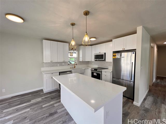 - Half a mile from world renowned Makaha Beach. Serene views of Makaha Valley and Mt. Ka'ala, Oahu's tallest peak, an active hiking trail. Located in an up and coming neighborhood close to markets and eateries. Never been lived in since renovation. New vinyl windows, vinyl flooring, appliances. Floor-to-ceiling tile in both bathrooms each with floating cabinets. New split AC units in bedrooms and living room. Pool comes with exterior shower.