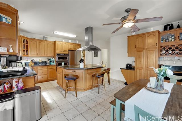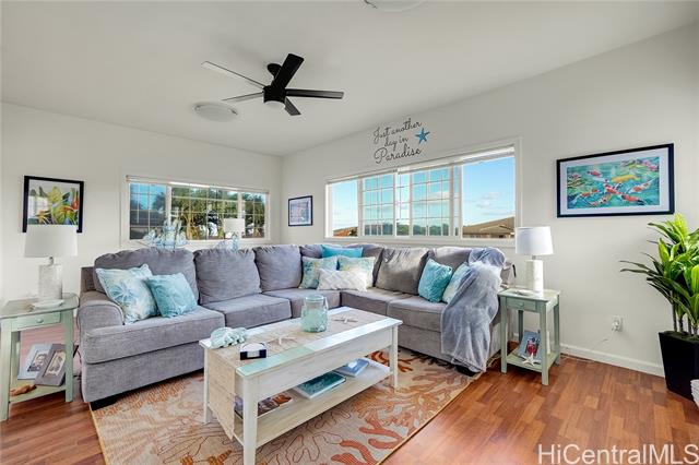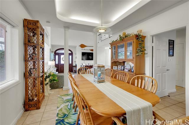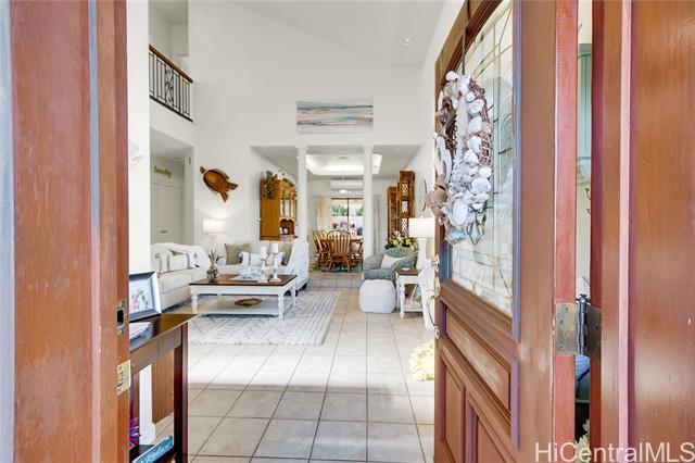 - Custom-built residence tucked away on a peaceful cul-de-sac in one of Makakilo’s most sought-after neighborhoods! This completely renovated 4-bedroom, 3.5-bath masterpiece blends modern luxury with timeless island charm. Step inside to soaring high ceilings and a thoughtfully designed floor plan that includes a possible mother-in-law suite with its own private entrance—perfect for extended family or guests. The gourmet kitchen, equipped with high-end appliances and quality upgrades, is a dream for those who love to cook and entertain, seamlessly flowing into the formal living and dining areas. Enjoy Hawaii’s indoor-outdoor lifestyle with a spacious backyard lanai, ideal for gatherings, BBQs, and relaxing evenings under the stars. Upstairs, a cozy family room invites you to unwind with a favorite movie, while the bedrooms offer comfort and retreat. Surrounded by lush, professionally landscaped grounds with exotic flowers and tropical plants, this home truly feels like a private oasis. Every detail has been carefully curated to create a space that is both luxurious and welcoming. Easy drive to Kapolei the second city of Oahu known for its quality restaurants and shopping options.