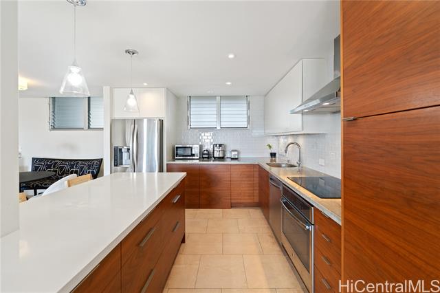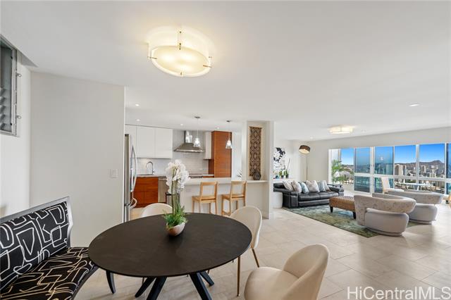 - **PRICE IMPROVEMENT + VA ASSUMABLE 2.75% INTEREST RATE** Welcome to this modern penthouse at 999 Wilder in the serene neighborhood of Makiki. This meticulously cared-for + renovated 2-bedroom 2-bath home spans 1,539 sf and provides an open concept layout, perfect for seamless living and entertaining. Situated at the top floor, this unit offers unobstructed panoramic views of the ocean, city, and Diamond Head, with stunning twilight cityscapes to enjoy from your private, large enclosed lanai. Embrace the comfort of split air conditioning, the convenience of a washer/dryer within your unit, and a covered + secure parking stall. Building amenities elevate your lifestyle with a heated swimming pool, BBQ area, 24-hour security, ample guest parking + more. Just minutes to all that Honolulu has to offer, enjoy an array of shopping, restaurants + entertainment options and world renowned beaches nearby. This penthouse unit at 999 Wilder is a rare find in Honolulu, offering a blend of luxury, convenience, and breathtaking views—perfect for your modern lifestyle.