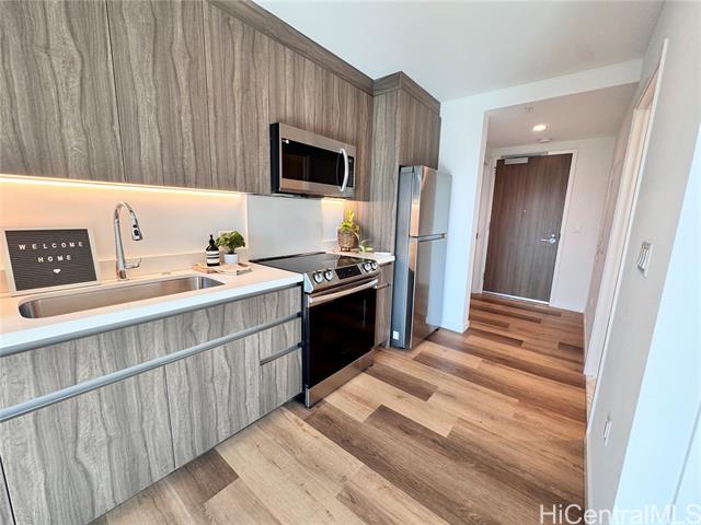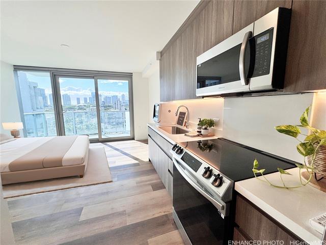 - Welcome home to The Park on Ke'eaumoku! Oahu's newest residential condominium, in the vibrant and exciting midtown Ala Moana area. Studio units like this don't come by too often and will make a great home to someone looking for low maintenance fees with all the amenities they could want. This home is brand new and never lived in! It features floor-to-ceiling windows, split AC, a private lanai, luxury vinyl flooring, quartz countertops, stainless steel appliances, and an in-unit washer and dryer. Resort-style amenities include a large infinity pool and spa with breathtaking city and ocean views, BBQ pavilions, pool cabanas, expansive gym, yoga room, theatre and media rooms, four clubrooms, sauna, guest parking, and more. This property has so much to offer- a convenient location, easy freeway access, food and shopping galore, minutes from Wal Mart, Sam's Club, Target and the world famous Ala Moana Shopping Center. Experience modern, luxury living at its finest in the heart of Honolulu.