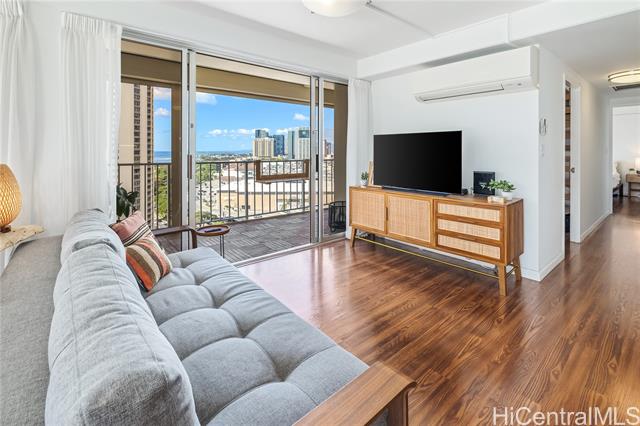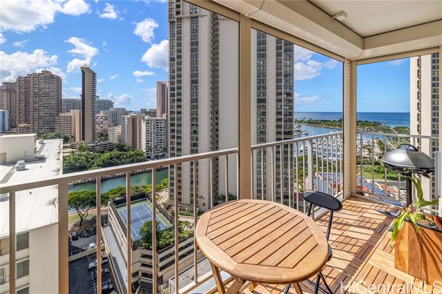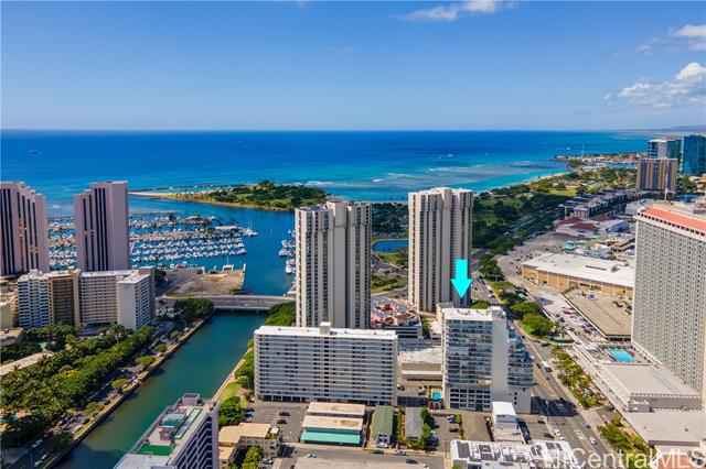 - Sunset Towers #PH-2004 is rare find! Ideally located between Ala Moana and Waikiki, it's orientation is optimal for expereincing vibrant, surreal sunsets to inspire your soul! Offering a cosmopolitan lifestyle and stunning views from mountain to sea. This mid-century modern corner unit at the top of the buidling, features a generous wrap-around lanai (~273 sq. ft.) on the preferred Diamond Head (East) side, showcasing panoramic views of the ocean, harbor, canal promenade, Magic Island, and beyond. Floor-to-ceiling windows that invite natural light and breezes, emphasizing indoor-outdoor harmony. Thoughtful updates include motorized shades across the lanai, ideal for frequent travelers. Split AC units in every room ensure year-round comfort. Currently rented for over $5,900/month, #2004 also enjoys lower HOA fees than other two-bedroom units in the building. Mid century charm meets modern comfort and accessibility. NO showings until 10/1/25.Pet-friendly with some restrictions; buyer to verify. VA approved