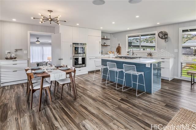 - Kailua Living Your Way—Now at a New Price | 3BD/2BA + 1BD/1BA Wake up to peaceful mornings, serene mountain views, and the kind of turnkey flexibility every buyer is chasing. Tucked into a peaceful Enchanted Lake cul-de-sac on a desirable corner lot, Nanawale delivers modern island style, clean lines, effortless flow, and a layout that works hard for you. The 3BD/2BA main home shines with split AC in every bedroom and a custom blue-and-white chef’s kitchen—gas range, double ovens, built-in refrigerator, plus a coffee nook—opening seamlessly to the living room and a covered lanai perfect for sunset dinners and weekend hangs. The private-entry 1BD/1BA suite with wet bar? That’s the difference-maker: multi-gen living, long-stay guests, or explore income potential. Fresh tilework, tankless water heater, smart features, and lush landscaping make this home as turnkey as it is stylish. Play in the grassy front yard, unwind on the back patio, and enjoy life just minutes from Kailua Beach, Whole Foods, top schools, and the Pali. This is Kailua living, your way.