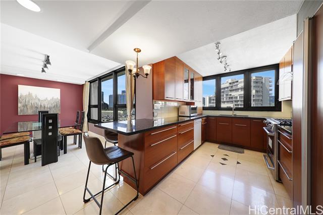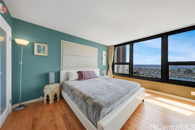 - Commandingly set on the ocean side of Yacht Harbor Towers’ Diamond Head Tower, the coveted “01” corner stack frames Magic Island, ocean, coastline, yacht clubs, marinas, beaches, parks, mountains, and sunsets—ever-changing vistas from a true three-exposure residence. Steady trade-wind cross-breezes when you want them; quiet central A/C when you don’t. This exquisitely upgraded 2BR/2BA (~1,495 sq ft interior) orients living and the primary suite toward the blue-water shoreline of Ala Moana Beach Park, Ala Wai Canal and Magic Island, while the second bedroom sits privately apart. Fee Simple. Excellent secure parking stall near the ramp for quick ingress/egress, plus a separate storage locker. The resort-caliber amenity deck features a heated saltwater pool and whirlpool, BBQ pavilions, tennis/pickleball court, an open-air fitness area, recreation/party patio, guest parking, on-site security, and a resident manager. Steps to the sand and beach park paths, with world class shopping and dining next door at Ala Moana Center. At the nexus of coastline, park, and marina—where scale, airflow, and walkability meet—#1501 delivers the premier scenic address at Ala Moana Boulevard.