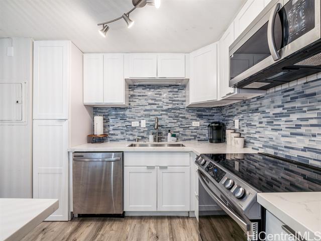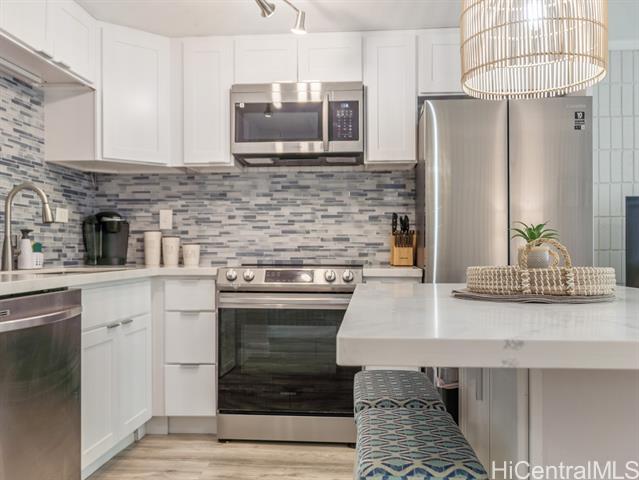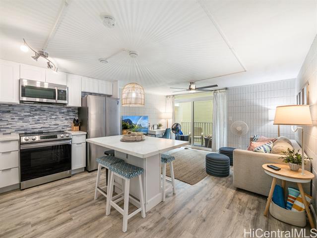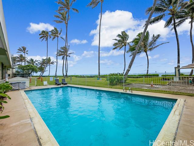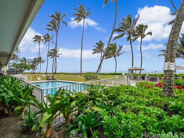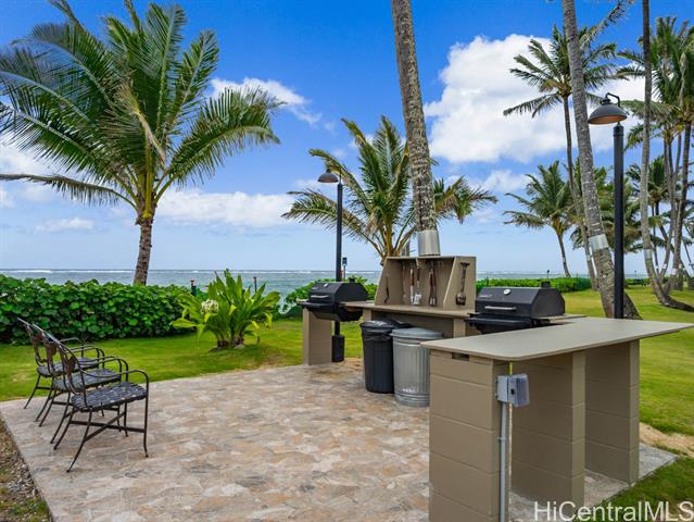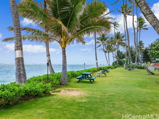 - PRICED TO SELL! Own your piece of paradise at this ocean front complex on Oahu's Windward Coast. Fully renovated from floor to ceiling with quartz counters, soft close cabinets, new LVP flooring, fixtures and equipped with a full size dishwasher and interior washer & dryer. The cozy private home can also come fully furnished, you just need to bring a toothbrush! The best part is the sun-soaked tropical location that will ensure a lifestyle balance with; a gym looking over the ocean, beachfront pool, BBQ area to cook your dinner or have friends over, relax or look for shells in the sandy beach front, snorkel & paddle board in your backyard. It's just a short drive to Kahana Bay, a sought after area for camping, fishing, boat launching and more. Plus you have the Crouching Lion Restaurant and bar that recently re-opened and cafe. This secured building recently went through structural and cosmetic upgrades and renovations, has 100% hurricane insurance and is VA approved.