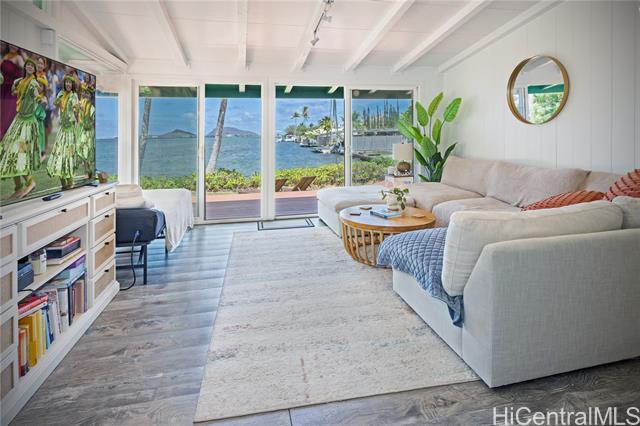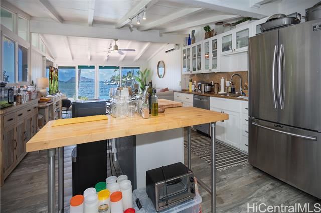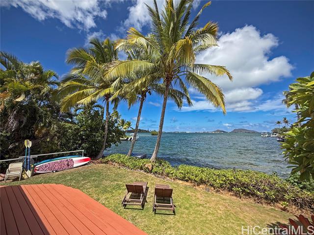 - Experience the elegance of bayfront living with these two impeccably remodeled residences on Kaneohe Bay. Each home is separately metered and offers 2 bedrooms, 1 bath, expansive lanais, and captivating views of the bay. Modern split AC systems in every room ensure year-round comfort and style. The lower residence is a private sanctuary at the water’s edge, where an open-concept design and a chef-inspired kitchen island create the perfect setting for both entertaining and everyday living. Its tranquil setting delivers an unmatched sense of serenity. The upper residence is framed by a lush garden and manicured lawn, welcoming you into a bright and airy interior. From the moment you enter, panoramic views of the vibrant blue waters and passing sailboats set the tone for refined island living. The primary suite showcases an unforgettable view, blending comfort and sophistication in a thoughtfully designed space. Both homes radiate charm, balance, and modern elegance—an exceptional opportunity to embrace the very best of Hawaii’s waterfront lifestyle. More photos to follow and tax records differ.
