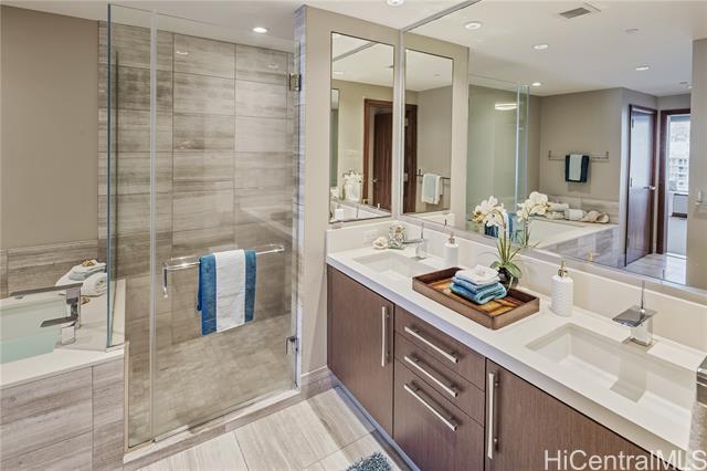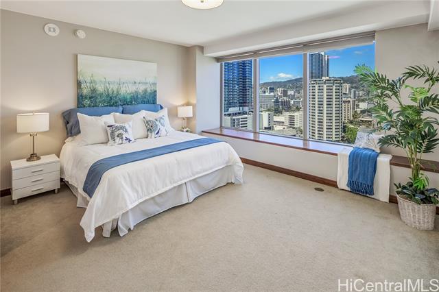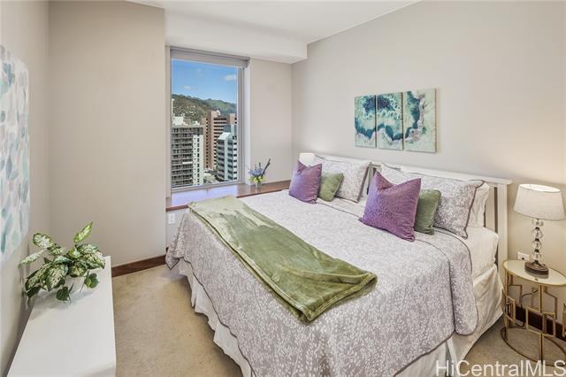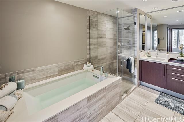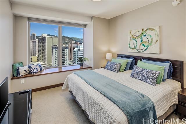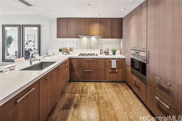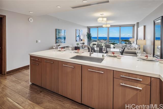 - Step into ONE Ala Moana Unit 1300, where luxury meets lifestyle in the heart of Honolulu. This 1800 sqft of 3 bedroom, 3 bathroom residence combines modern elegance, floor-to-ceiling windows, and panoramic views of the ocean, city, and mountains. Hardwood floors were refinished just before listing, enjoy cooking with gas, Sub Zero refrigerator and Miele appliances. An open concept design in the kitchen, dining, and living, 2 en-suite bedrooms, guest bedroom, and a guest bathroom. Two side-by-side parking stalls are included, offering direct elevator access to the residence floor without the need to transfer. All furnishings can be included, making the transition effortless for the new owner. The ultimate convenience of daily living with direct access to Ala Moana Center. Shop daily essentials with Foodland Farms, Target, Long’s Drug Store, restaurants from fine dining to food court, and luxury shopping at your finger tips. Resort like amenities include: infinity pool, hot tub, sauna, fitness center, dog park, children’s playground, movie room, private dining, chefs kitchen, guest suites, library, conference room, and more. Secured parking with 24 hour concierge service.