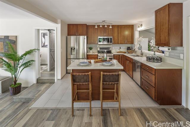 - New price! Gorgeous views can be enjoyed from every corner of this 4-bedroom, 2-bath Salt Lake home. The living room opens to an impressive, spacious deck, allowing wonderful indoor-outdoor living. Additional upgrades include new flooring, a remodeled kitchen, updated windows (farewell jalousies), an expanded living area, popcorn ceiling removal, and more. It also has a designated indoor laundry area and a workroom adjacent to the garage. This home is move-in ready! Situated on a 10,000 SF lot in a quiet cul-de-sac with R-5 zoning, the property offers both privacy and potential. Don't let the posted home square footage fool you. It lives way bigger, so come and see for yourself! The location is extremely convenient: just 0.3 miles to Salt Lake Shopping Center, 1.8 miles to Daniel K. Inouye International Airport, 2.9 miles to Tripler Medical Center, and 6 miles to Downtown Honolulu. This home combines modern updates, outdoor space, and a location that makes daily life easier.
