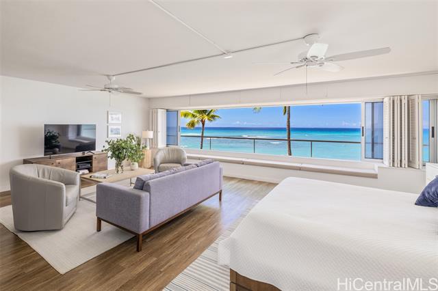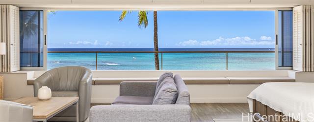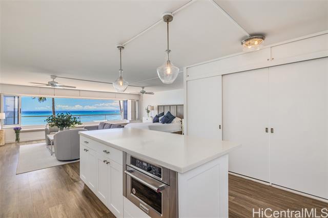 - Oceanfront Living at the Colony Surf on Oahu’s Gold Coast! Rarely available, desired low floor direct oceanfront 1 bedroom residence captures sweeping views of the turquoise Pacific, golden sandy beaches, swaying palms, sailboat regattas, dazzling fireworks, & iconic Waikiki. Fully renovated unit includes high quality white cabinets, white quartzite countertops, stainless steel Samsung appliances, chef's gas stove, built in microwave, wood style vinyl flooring, 2 ceiling fans, extra storage, and more! Popcorn ceiling has been removed. The elegant Colony Surf offers a refined marble lobby, secure entry, & home to the world-class restaurant, Michel’s at Colony Surf. Step directly onto one of the Gold Coast’s premier sandy swimming & surfing beaches, with the prestigious Outrigger Canoe Club & Kaimana Beach just steps away. Across the street, enjoy the open expanse of Kapiolani Park, Honolulu’s 300-acre recreation haven with walking paths, tennis, pickleball, exercise areas, & picnic spots. Stroll to Diamond Head, Waikiki Aquarium, Honolulu Zoo, & outdoor concerts at the Waikiki Shell. 1 assigned parking. Maintenance fee covers electricity, cable, internet, gas, water, & sewer.