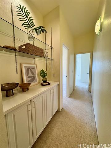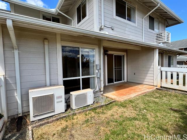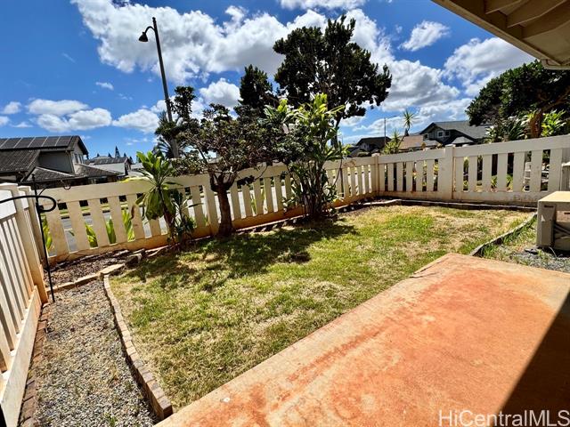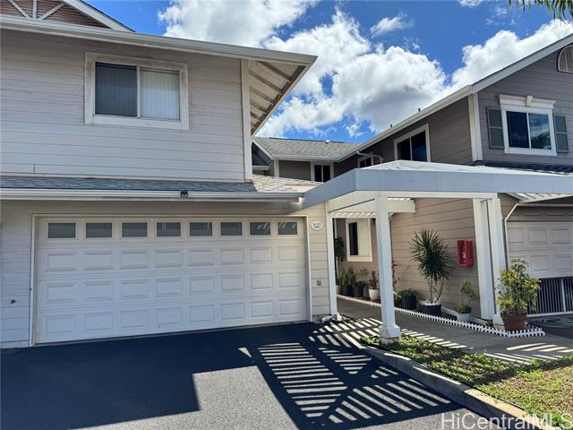 - Welcome to Village on the Green, where comfort meets convenience. This highly sought-after 3-bedroom, 2.5-bath home offers 1,446 sq. ft. of living space plus an attached 385 sq. ft. two-car garage. Vaulted ceilings and abundant natural light create an open living space, perfect for entertaining or relaxing at home. The main level features a welcoming living room, functional kitchen, and convenient half bath. Upstairs, you’ll find a generous sized main bedroom with en suite full bath, and two additional bedrooms and one full baths, providing ample privacy and space. Step outside to your fenced-in yard, easily accessible from the living room—ideal for gatherings or a quiet morning coffee. Located near Waikele Country Club and Waikele Premium Outlets, you’ll enjoy easy access to golf, shopping, dining, and more. Sold AS-IS.