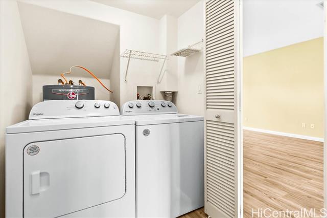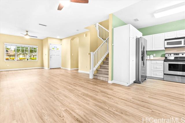 - Welcome to this 3-bedroom, 2.5-bath home offering comfort and functionality across 1,196 sq. ft. of living space. Enjoy a bright, open layout with central air conditioning for year-round comfort. The kitchen comes complete with stainless steel appliances, washer, and dryer, while the in-unit laundry adds everyday convenience. The primary suite features a spacious walk-in closet, and two additional bedrooms provide flexibility for family, guests, or a home office. A 2-car garage offers plenty of parking and storage as well as ample guest parking. Move-in ready and located in a desirable Ke Noho Kai Townhomes, this home is waiting for its next owner!