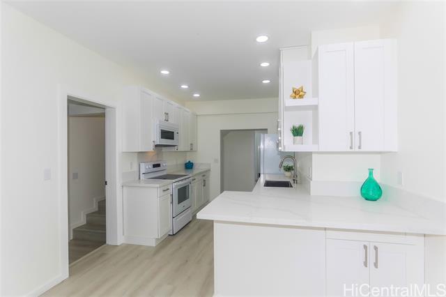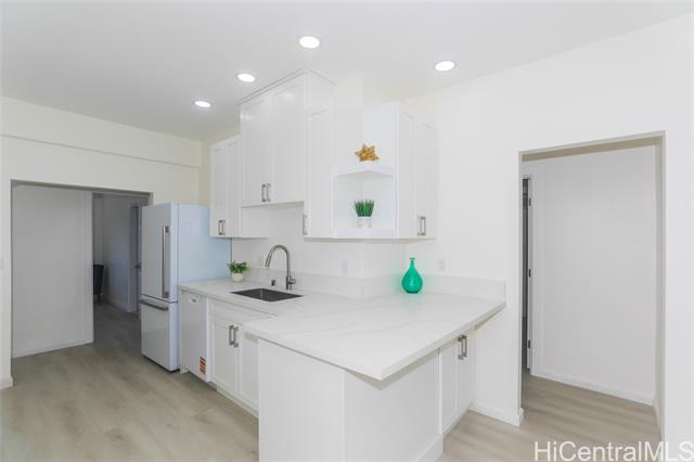 - Fully and beautifully renovated 7-bedroom/3-bathroom home offering multi-generational living or potential rental income. Efficient layout featuring 5-bedroom/2-bathroom downstairs, plus the extended 2-bedroom/1-bath upstairs with a wet bar and separate entrance. Brand new everything top to bottom. Centrally located in the heart of Aiea town with easy access to eateries, shops, Pearlridge mall, military bases, and freeway entrances. Beautiful views from the expanded deck. Parking for up to 6 cars. Must see!